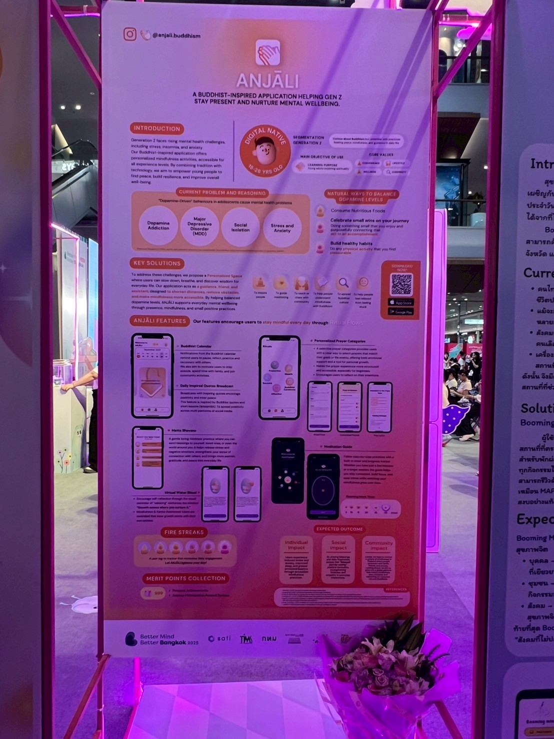 A Biological Sciences alumna of Mahidol University International College’s (MUIC), Ms. Nadthawee Promprasit, Co-founder & CMO of ANJĀLI Buddhism (อัญชลี), was invited to share her work at Better Mind Better Bangkok 2025 4th Edition on October 5, 2025 at Samyan Mitrtown in Bangkok.