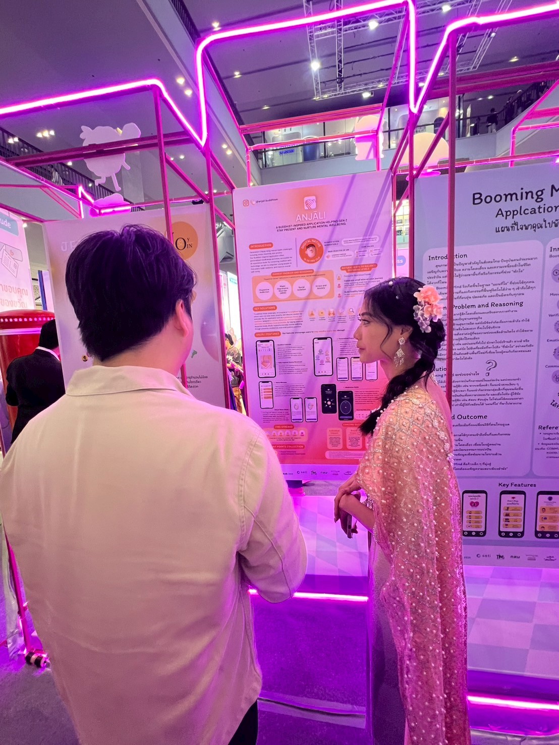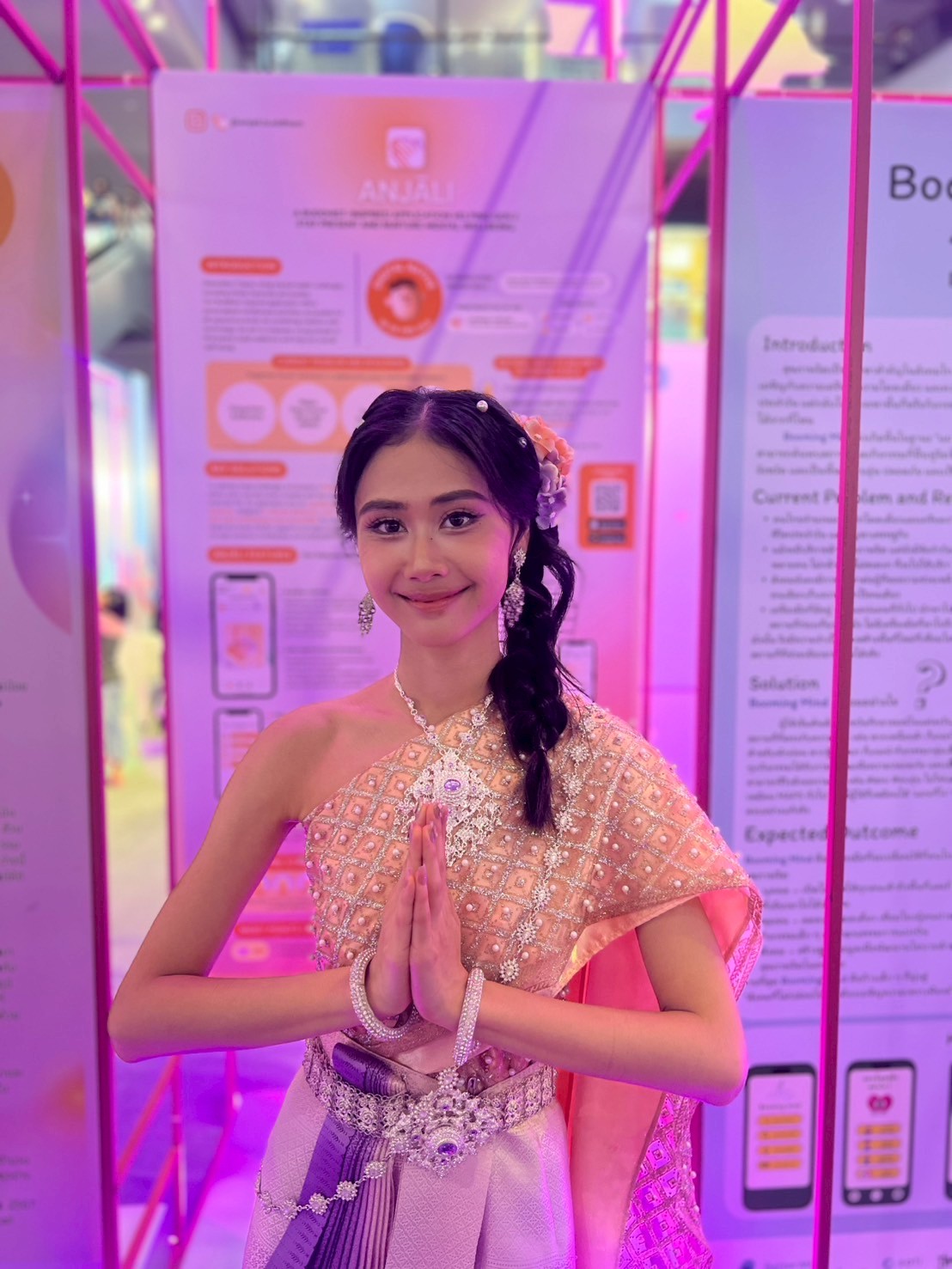 Out of several projects that applied, only 12 were chosen for presentation. Ms. Nadthawee’s team, ANJĀLI, stood among them and received both a certificate of recognition and an award for contribution.