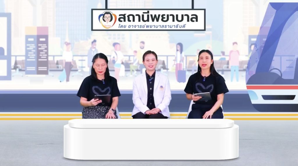 “Nurse Station” is a monthly live program produced by Ramathibodi School of Nursing, Faculty of Medicine Ramathibodi Hospital, Mahidol University. The program aims to educate the public about healthcare knowledge and how to apply that knowledge correctly and appropriately in daily life to promote sustainable health.