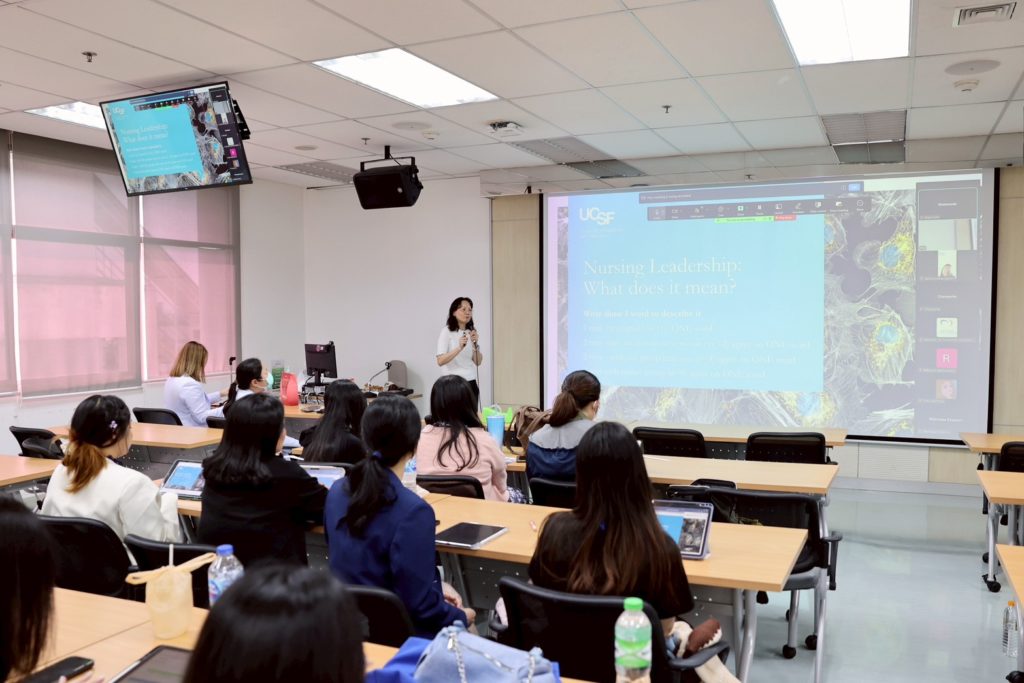 On December 8, 2025, first-year students of the Master of Nursing Science Program (Thai and International Programs) at Ramathibodi School of Nursing, Faculty of Medicine Ramathibodi Hospital, Mahidol University, attended a special lecture titled “The relationship between leadership and policy development and implementation.” The lecture was honorably delivered by Prof. Dr. Jyu-Lin Chen, RN, CNS, FAAN, Professor of Family Health Care Nursing, School of Nursing, University of California, San Francisco (UCSF), USA.