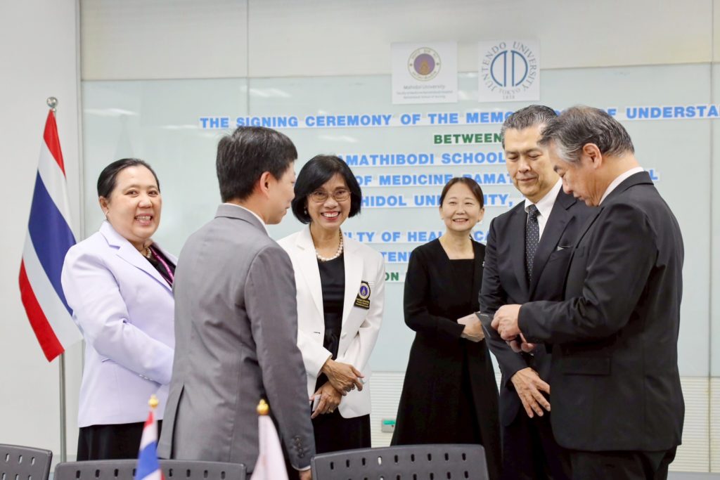 The signing ceremony took place at the Meeting Room 708B on the 7th Floor of the Medical Learning Resource Center and Ramathibodi School of Nursing Building