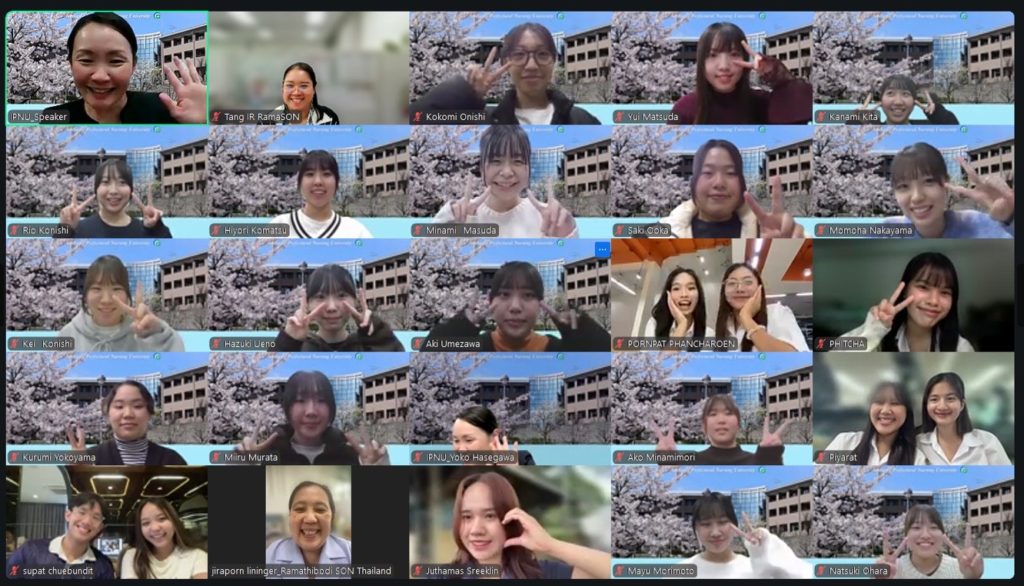 First-year nursing students from the Bachelor of Nursing Science Program, Ramathibodi School of Nursing, participated in an “Online Class” organized by Ishikawa Prefectural Nursing University, Japan, via Zoom.