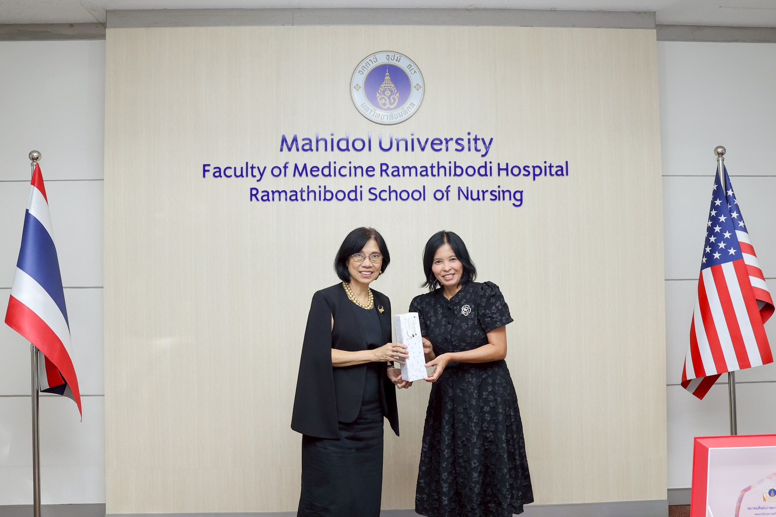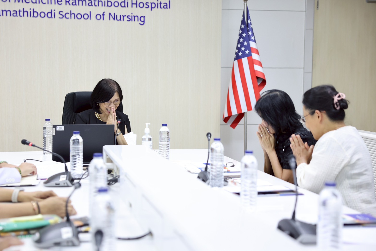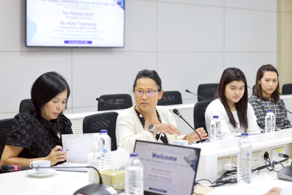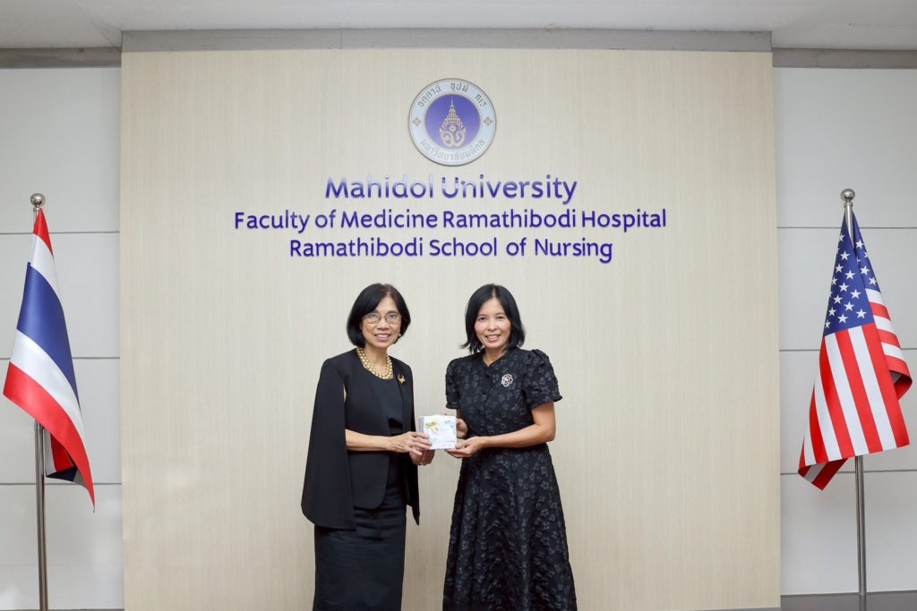 On December 26, 2025, Associate Professor Dr. Poolsuk Janepanish Visudtibhan, Director of Ramathibodi School of Nursing, Faculty of Medicine Ramathibodi Hospital, Mahidol University, together with Instructor Dr. Jiraporn Lininger, Deputy Director for International Relations and Program Chair for the Master of Nursing Science Program (International Program), administrators, and faculty members of Ramathibodi School of Nursing, warmly welcomed Professor Ladda Thiamwong, PhD, MSN, RN, FAAN, FNAP, FGSA, Florida Blue Endowed Professor for Healthy Communities, and Professor and Lead, Healthy Aging Lab; Ms. Pattama Ulrich, PhD student in Nursing; and Ms. Nicha Thiamwong, Undergraduate student in Nursing from the College of Nursing, University of Central Florida, Orlando, Florida, USA. The visit aimed to explore opportunities for collaboration in education, research, and academic cooperation between the institutions.