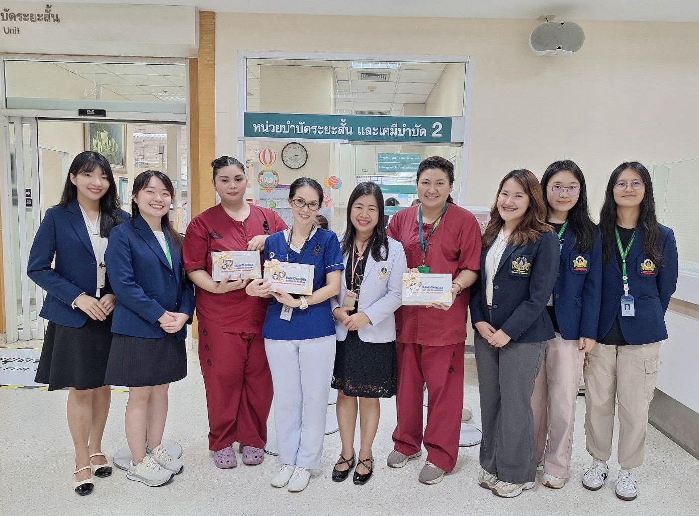 We would like to express our gratitude to the Short-Term Treatment and Chemotherapy Unit 2 for their warm welcome and the knowledge they shared, which significantly enhanced the nursing leadership potential of students in the Master of Nursing Science (International Program).