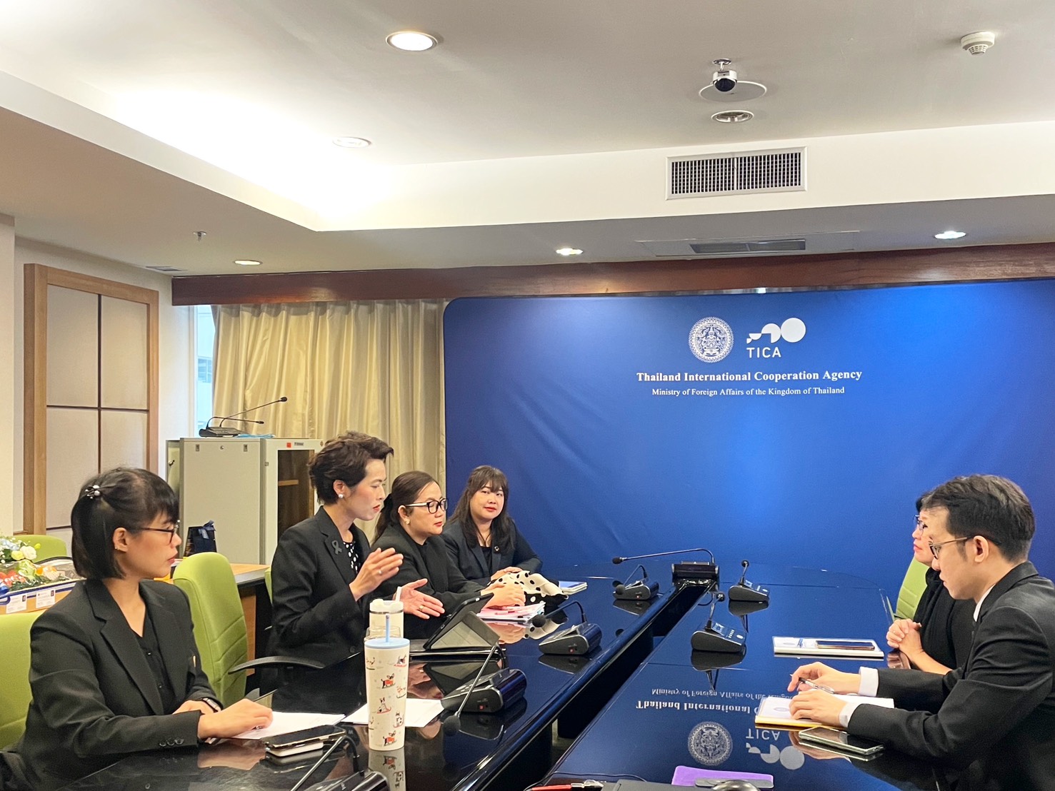 The meeting was led by Mr. Chulvat Narinthrangura Na Ayutthaya, Director-General, together with Mrs. Arunee Hiam, Deputy Director-General, Miss Chidchanok Malayawong, Director of the Development Promotion and Coordination Division, and representatives of TICA. The meeting was held at the Government Complex, Chaeng Watthana Road, Bangkok.