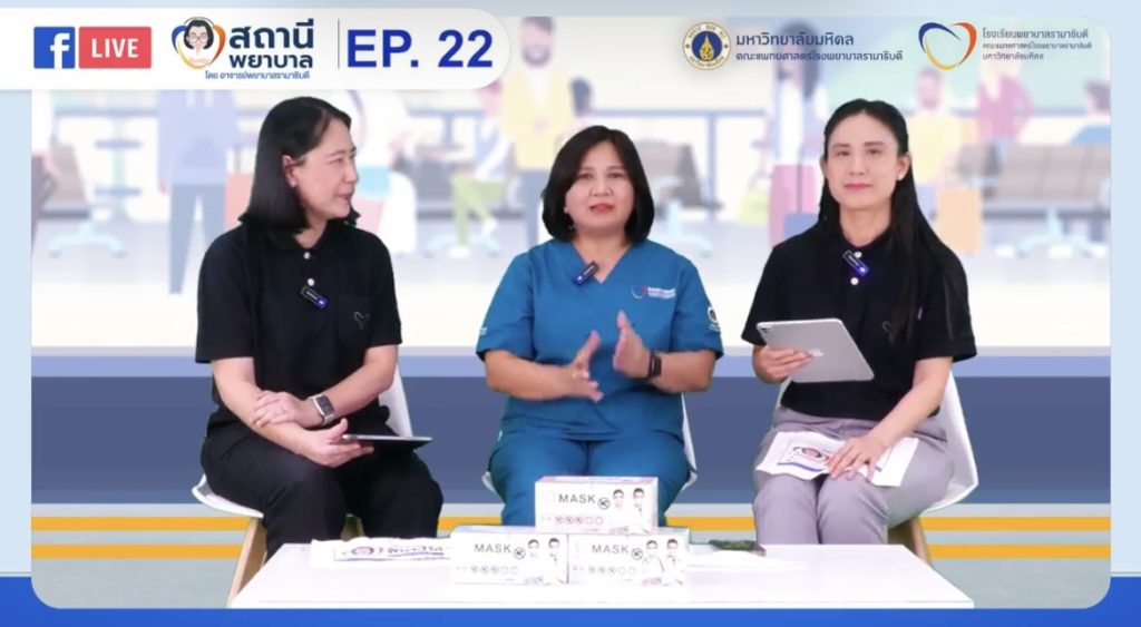The program aims to educate the public about healthcare knowledge and how to apply that knowledge correctly and appropriately in daily life to promote sustainable health. The program was broadcast via Facebook Live of Ramathibodi School of Nursing, Faculty of Medicine Ramathibodi Hospital.