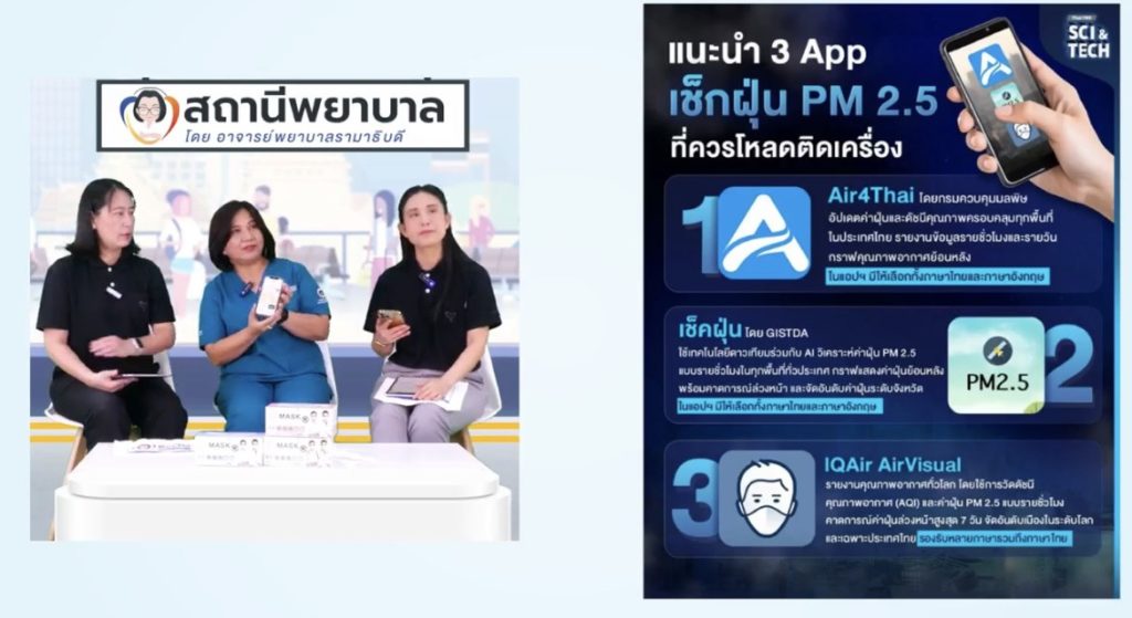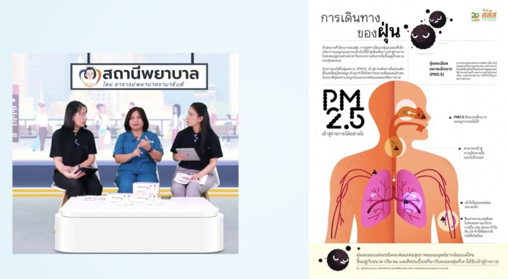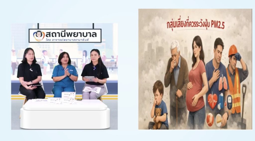 On February 2, 2026, Ramathibodi School of Nursing, Faculty of Medicine Ramathibodi Hospital, Mahidol University, hosted “Nurse Station” Episode 22: “Be Aware of PM2.5: Everyday Risk, Protect Your Health.” The episode was presented by Assistant Professor Dr. Dongruethai Buadong, Chair of the Division of Pediatric Nursing, Ramathibodi School of Nursing, Faculty of Medicine Ramathibodi Hospital, Mahidol University.