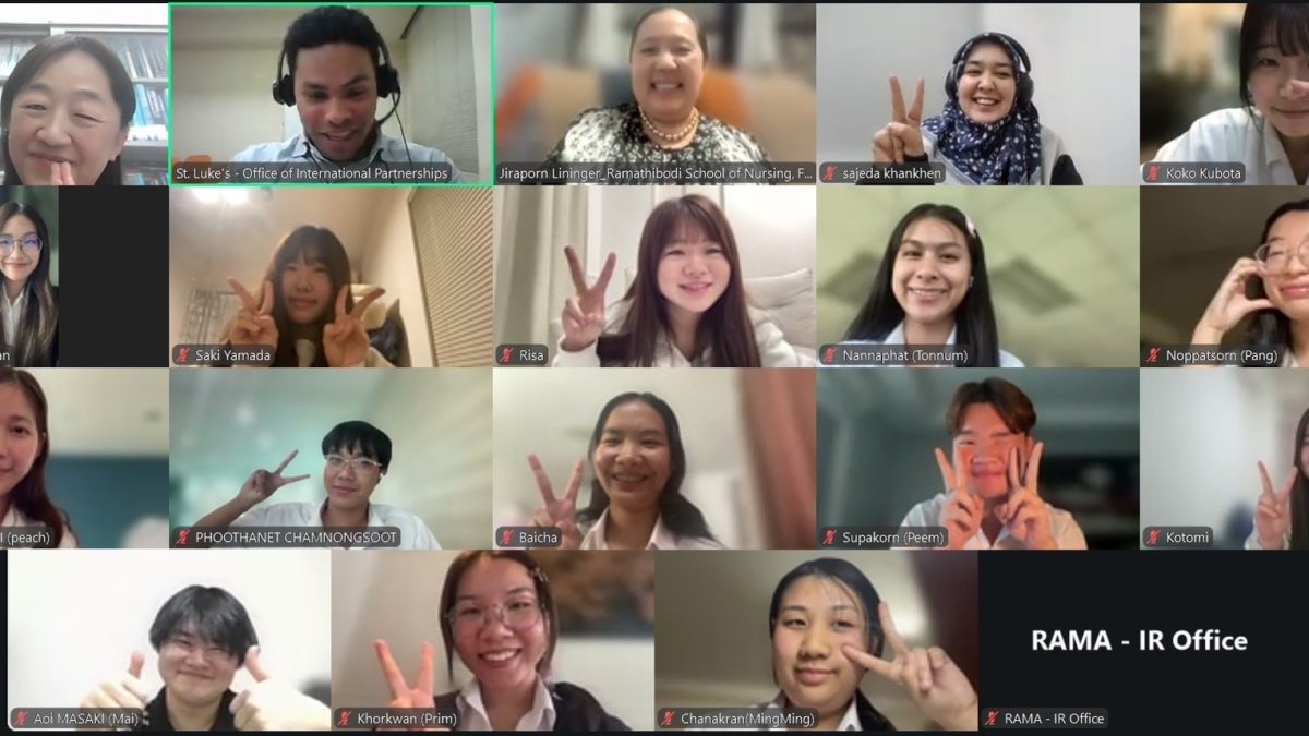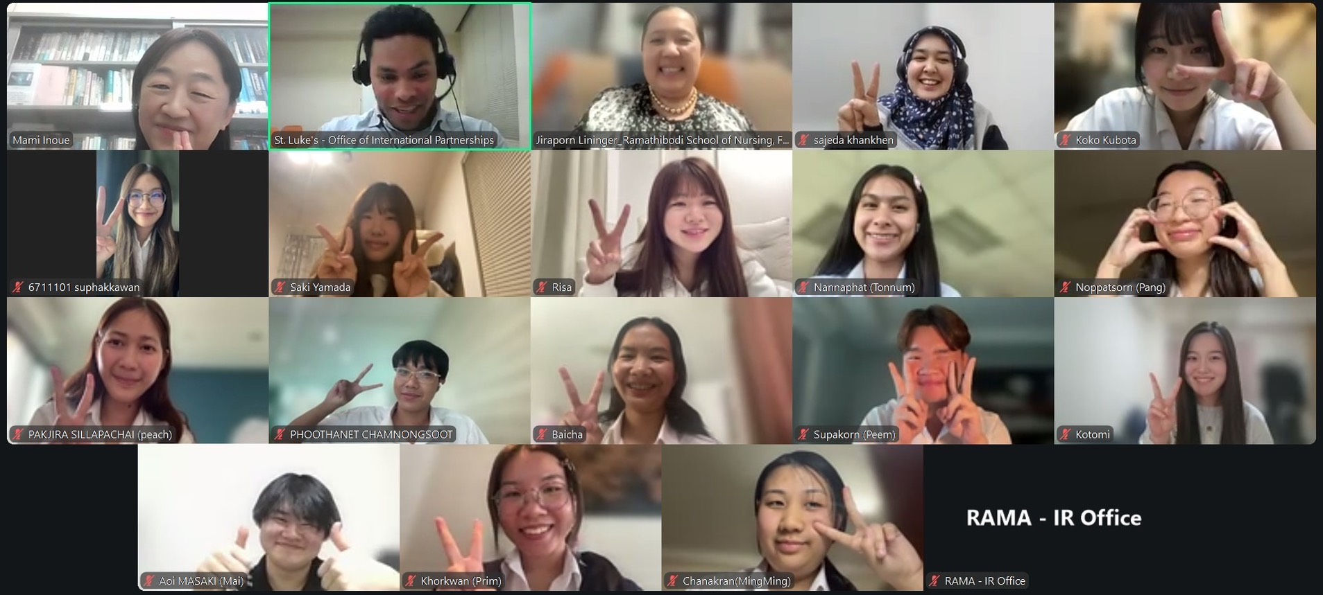 On January 14, 2026, nine second-year Bachelor of Nursing students from Ramathibodi School of Nursing, Faculty of Medicine Ramathibodi Hospital, Mahidol University, participated in an online class hosted by St. Luke’s International University, Japan, through a Zoom meeting.