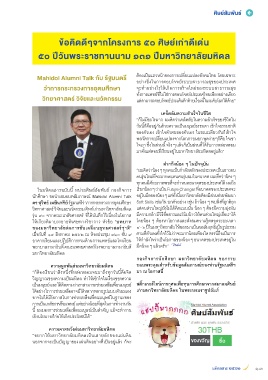 นักศึกษา ขอน�าเสนอบทสัมภาษณ์ Mahidol Alumni Talk อยู่ในมือของน้อง ๆ แต่ทั้งนี้มหาวิทยาลัยต้องมีส่วนช่วยพัฒนา
