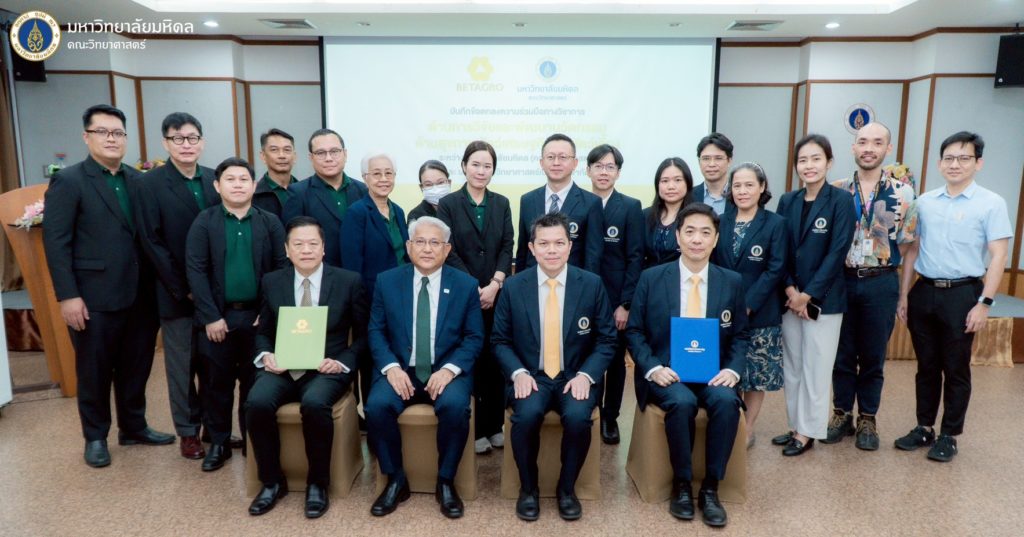 คณะวิทยาศาสตร์ มหาวิทยาลัยมหิดล ลงนามบันทึกข้อตกลงความร่วมมือทางวิชาการ การวิจัยและพัฒนานวัตกรรมด้านสุขภาพสัตว์เศรษฐกิจและสัตว์เลี้ยง ร่วมกับบริษัท ศูนย์วิทยาศาสตร์เบทาโกร จำกัด