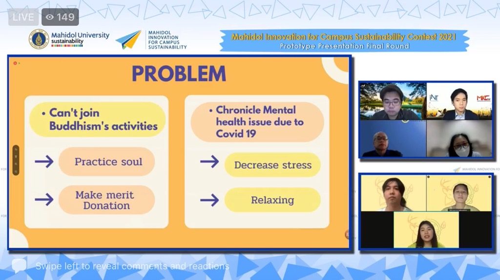 วันที่ 1 กันยายน 2564 รองศาสตราจารย์ ดร.กิติกร จามรดุสิต รองอธิการบดีฝ่ายสิ่งแวดล้อมและการพัฒนาอย่างยั่งยืน มหาวิทยาลัยมหิดล เป็นประธานการประกวด “Innovation for Campus Sustainability Contest 2021” ในรอบชิงชนะเลิศ ในรูปแบบออนไลน์ เพื่อส่งเสริมให้นักศึกษามหาวิทยาลัยมหิดล สร้างสรรค์สิ่งประดิษฐ์ เทคโนโลยี ในการลดมลพิษสิ่งแวดล้อม และ เปลี่ยนแปลงโลกให้ดีขึ้น สนับสนุนมหาวิทยาลัยมหิดลให้ก้าวสู่การพัฒนาอย่างยั่งยืน