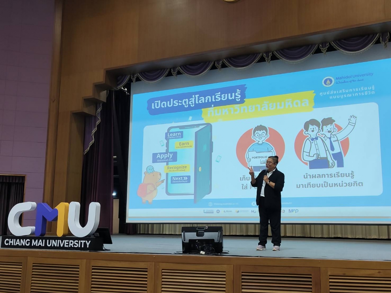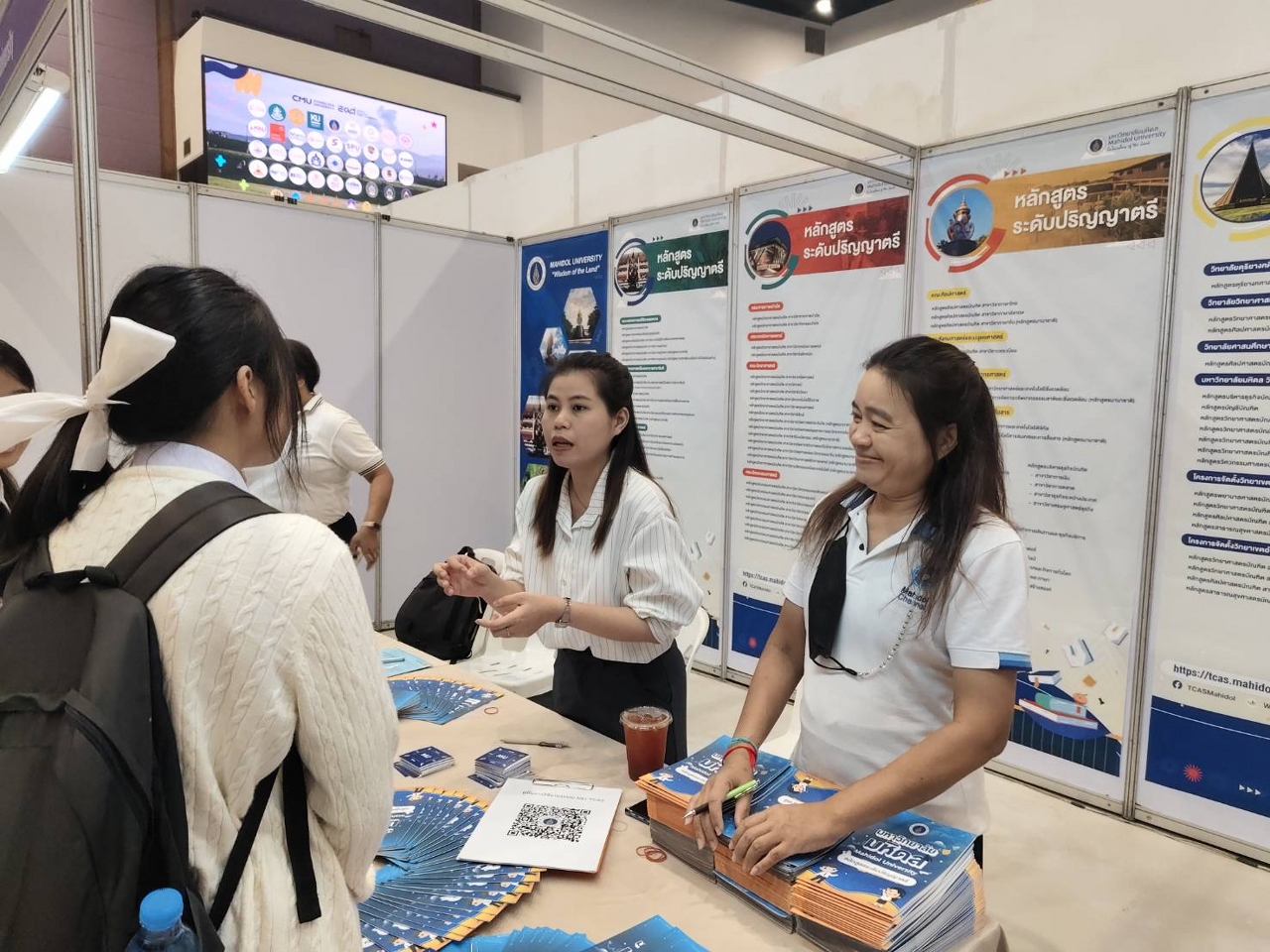 วันที่ 13-14 พฤศจิกายน 2568 มหาวิทยาลัยมหิดล เข้าร่วมจัดแสดงนิทรรศการศึกษาระดับปริญญาตรี ในงาน “ตลาดนัดหลักสูตรอุดมศึกษา” ครั้งที่ 27 ณ หอประชุมมหาวิทยาลัยเชียงใหม่ จังหวัดเชียงใหม่ โดยมีสถาบันการศึกษาทั้งภาครัฐและเอกชนกว่า 60 สถาบันทั่วประเทศ โดยมี ศาสตราจารย์ ดร. นายแพทย์พงษ์รักษ์ ศรีบัณฑิตมงคล อธิการบดีมหาวิทยาลัยเชียงใหม่ ประธานในพิธีเปิดฯ ซึ่งมีนักเรียน อาจารย์แนะแนว และผู้ปกครองในพื้นที่ภาคเหนือ เข้าร่วมงานกว่า 25,000 คน โอกาสนี้ อาจารย์ ดร.ชนกพร พัวพัฒนกุล ผู้อำนวยการศูนย์ส่งเสริมการเรียนรู้แบบบูรณาการชีวิต เจ้าหน้าที่กองบริหารการศึกษา และงานสื่อสารองค์กร กองบริหารงานทั่วไป ร่วมให้ข้อมูลเกี่ยวกับรายละเอียดจำนวนการรับในแต่ละรอบในหลักสูตรต่าง ๆ คุณสมบัติผู้สมัคร และเกณฑ์ในการคัดเลือกบุคคลเข้าศึกษาในสถาบันอุดมศึกษา (TCAS) ปีการศึกษา 2569 พร้อมบรรยายหัวข้อ “7 เรื่องทราบแล้วเปลี่ยน ที่ มหาวิทยาลัยมหิดล” เพื่อช่วยให้นักเรียนและผู้ปกครองสามารถวางแผนการศึกษาต่อได้อย่างเหมาะสม