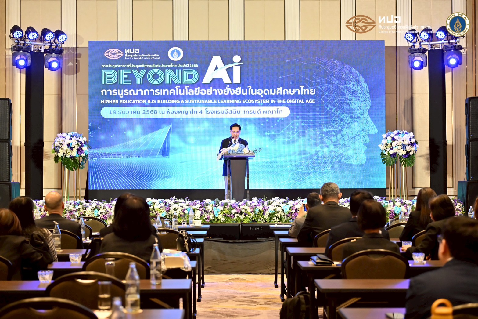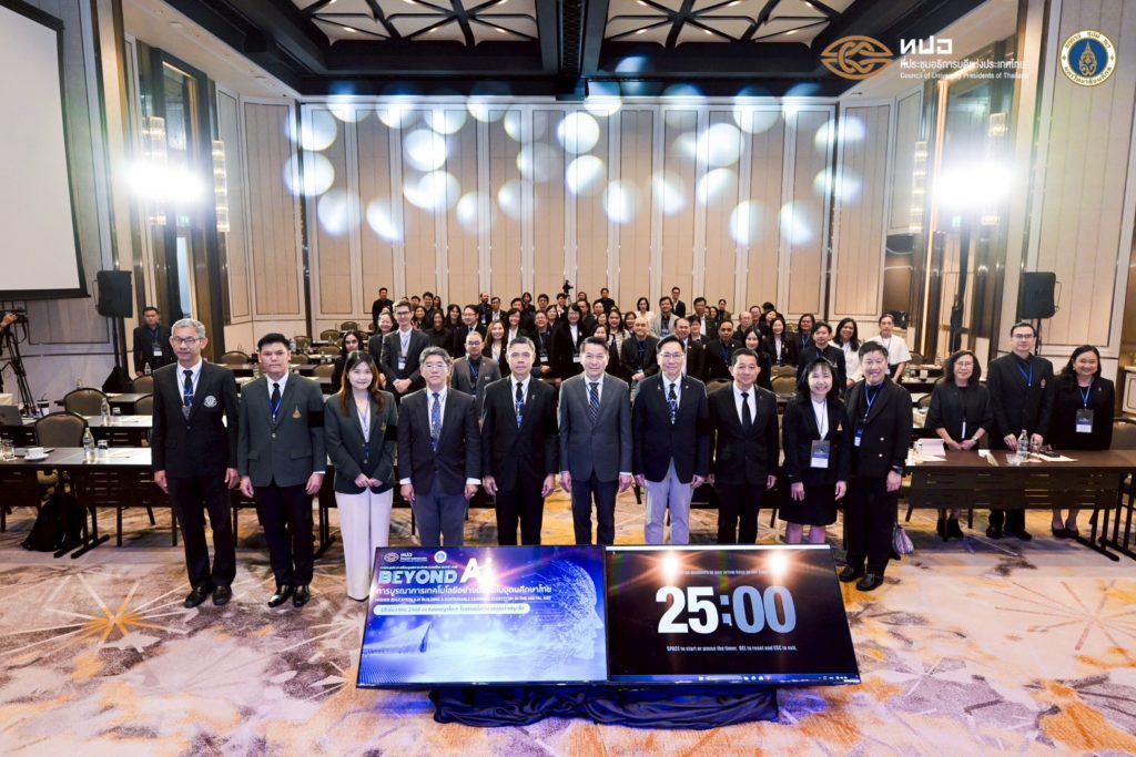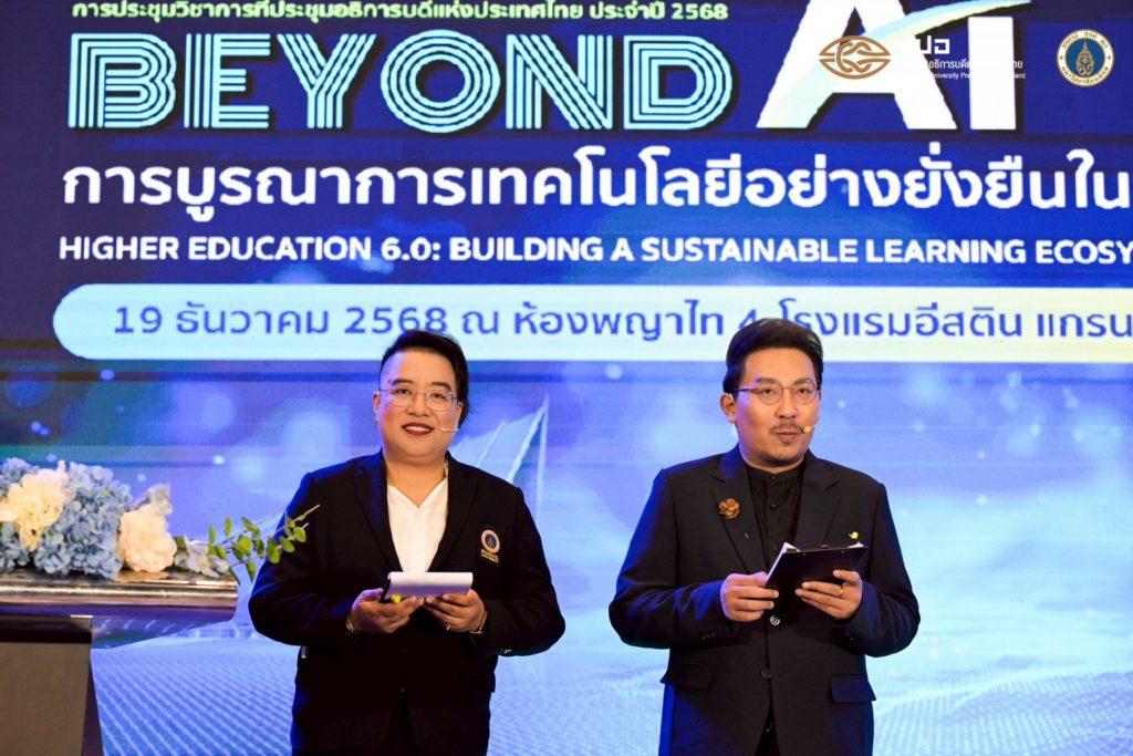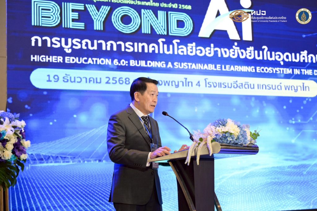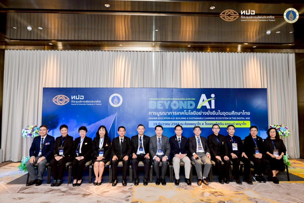 การประชุมวิชาการที่ประชุมอธิการบดีแห่งประเทศไทย ประจำปี 2568 Beyond AI: การบูรณาการเทคโนโลยีอย่างยั่งยืนในอุดมศึกษาไทย (Higher Education 6.0: Building Sustainable Learning Ecosystems in the Digital Age) จัดขึ้นเพื่อเป็นเวทีนำเสนอแลกเปลี่ยน และระดมความคิดเห็นเกี่ยวกับการเปลี่ยนผ่านของอุดมศึกษาไทยสู่ยุค Education 6.0 โดยมุ่งเน้นการบูรณาการเทคโนโลยีอย่างยั่งยืน การสร้างระบบนิเวศการเรียนรู้ที่สอดคล้องกับบริบทของประเทศไทย และการเตรียมความพร้อมบัณฑิตให้มีศักยภาพตอบสนองต่อความต้องการของประเทศและตลาดแรงงานในระดับสากล