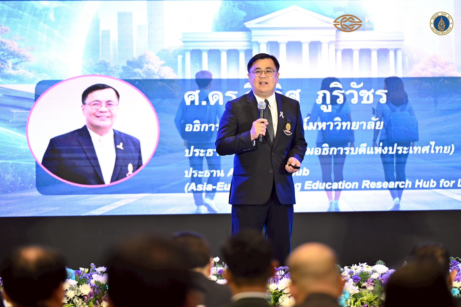 ในโอกาสนี้ ศาสตราจารย์ นายแพทย์ปิยะมิตร ศรีธรา อธิการบดีมหาวิทยาลัยมหิดล บรรยายพิเศษในหัวข้อ “บทบาทมหาวิทยาลัยกับการขับเคลื่อนอนาคตที่ยั่งยืน” และศาสตราจารย์ ดร.วิเลิศ ภูริวัชร ประธานที่ประชุมอธิการบดีแห่งประเทศไทย และอธิการบดีจุฬาลงกรณ์มหาวิทยาลัย บรรยายพิเศษในหัวข้อ “ก้าวต่อไปของอุดมศึกษาไทย ถอดบทเรียนและกำหนดทิศทางการศึกษาไทย”
