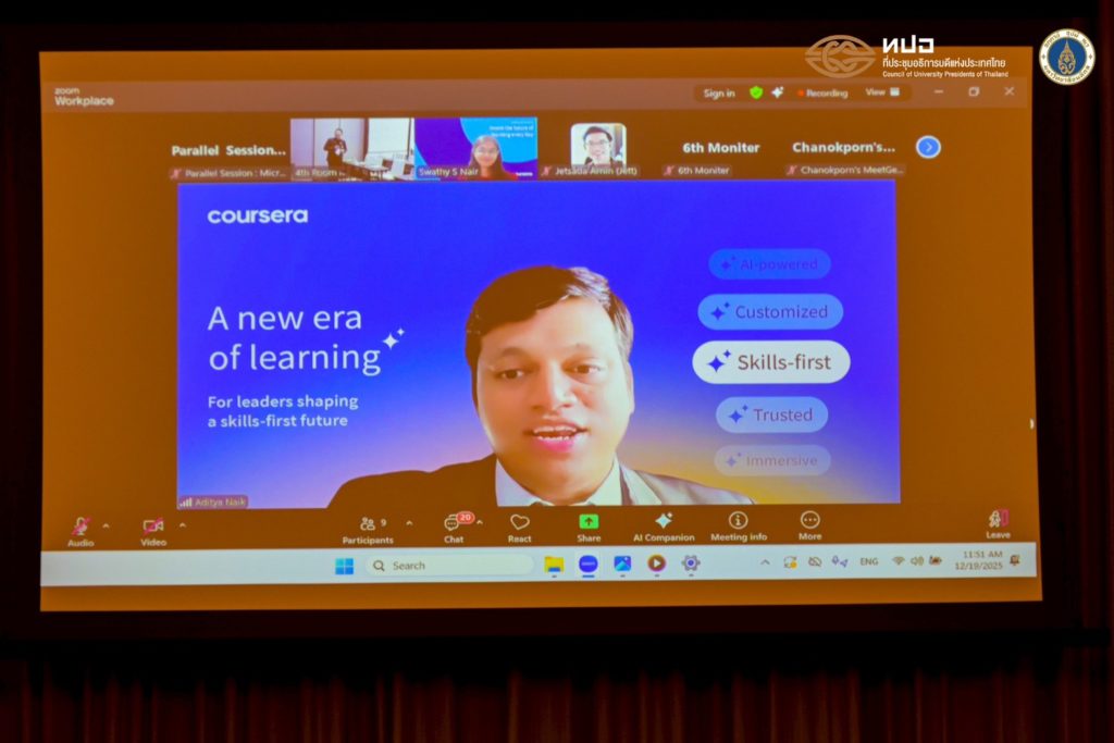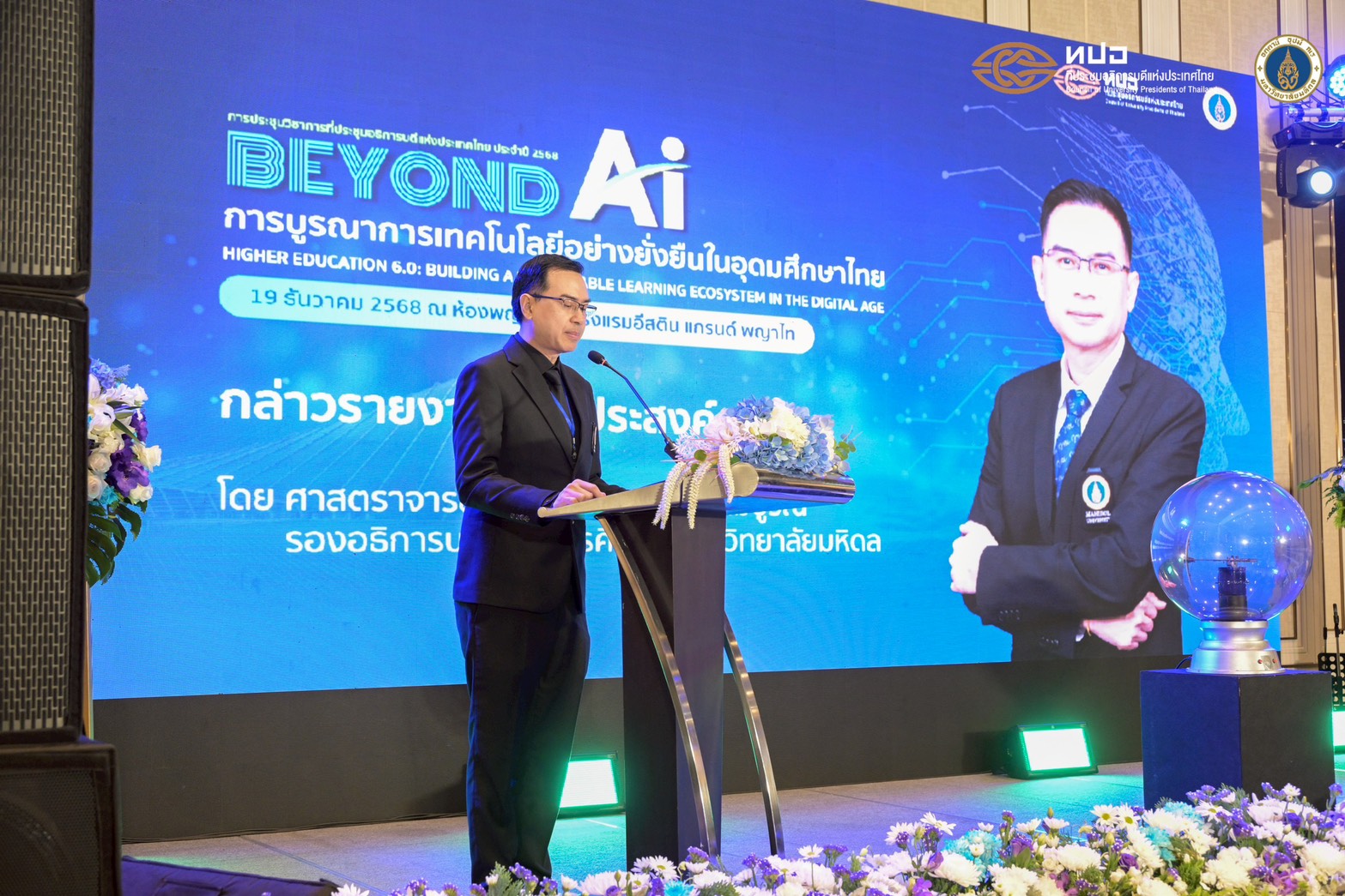 วันที่ 19 ธันวาคม 2568 มหาวิทยาลัยมหิดล เป็นเจ้าภาพจัดการประชุมคณะกรรมการวิชาการและพัฒนาคุณภาพการศึกษา (สัญจร) ครั้งที่ 4/2568 “Beyond AI: การบูรณาการเทคโนโลยีอย่างยั่งยืนในอุดมศึกษาไทย” (Higher Education 6.0: Building Sustainable Learning Ecosystems in the Digital Age) โดยได้รับเกียรติจาก ศาสตราจารย์ นายแพทย์ปิยะมิตร ศรีธรา อธิการบดีมหาวิทยาลัยมหิดล เป็นประธานเปิดการประชุม พร้อมด้วย ผู้ช่วยศาสตราจารย์ ดร.ปมทอง มาลากุล ณ อยุธยา เลขาธิการที่ประชุมอธิการบดีแห่งประเทศไทย ศาสตราจารย์ ดร. นายแพทย์สิริฤกษ์ ทรงศิวิไล ประธานกรรมการส่งเสริมวิทยาศาสตร์ วิจัยและนวัตกรรม (กสว.) และรองศาสตราจารย์เพ็ญรัตน์ หงษ์วิทยากร รองเลขาธิการที่ประชุมอธิการบดีแห่งประเทศไทย (ทปอ.) โอกาสนี้ ศาสตราจารย์ ดร. เภสัชกรเนติ สุขสมบูรณ์ รองอธิการบดีฝ่ายการศึกษา มหาวิทยาลัยมหิดล ในฐานะประธานคณะกรรมการวิชาการและพัฒนาคุณภาพการศึกษา ที่ประชุมอธิการบดีแห่งประเทศไทย (ทปอ.) กล่าวรายงานวัตถุประสงค์ของการจัดงาน โดยมีอธิการบดี ผู้บริหารสถาบันอุดมศึกษา และผู้แทนจากมหาวิทยาลัยต่าง ๆ เข้าร่วมการประชุมวิชาการ ณ โรงแรมอีสติน แกรนด์ พญาไท
