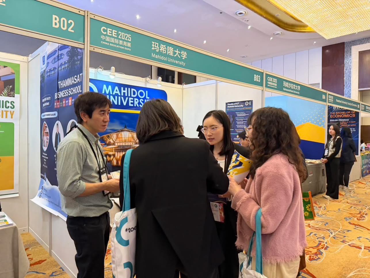 เมื่อวันที่ 6-8 พฤศจิกายน 2568 มหาวิทยาลัยมหิดล ร่วมจัดนิทรรศการในงาน China Education Expo (CEE) 2025 โดยมี คณาจารย์ บุคลากร และผู้เกี่ยวข้อง จากส่วนงานต่าง ๆ ของมหาวิทยาลัยมหิดล เข้าร่วมจัดนิทรรศการ ประกอบด้วย กองวิเทศสัมพันธ์ มหาวิทยาลัยมหิดล โรงเรียนพยาบาลรามาธิบดี คณะแพทยศาสตร์โรงพยาบาลรามธิบดี มหาวิทยาลัยมหิดล คณะเทคโนโลยีสารสนเทศและการสื่อสาร มหาวิทยาลัยมหิดล บัณฑิตวิทยาลัย มหาวิทยาลัยมหิดล สถาบันวิจัยภาษาและวัฒนธรรมเอเชีย มหาวิทยาลัยมหิดล เพื่อร่วมให้ข้อมูลเกี่ยวกับรายละเอียดการเรียนการสอนทั้งในระดับปริญญาตรี และระดับบัณฑิตศึกษา แนะนำแนวทางในการเข้าศึกษาต่อที่ประเทศไทย ขั้นตอนต่างๆ ในการทำวีซ่า และบรรยากาศแการเรียนการสอนและสภาพแวดล้อม ของมหาวิทยาลัยมหิดล ซึ่งจัดโดย China Education Association for International Exchange (CEAIE) ในระหว่างวันที่ 31 ตุลาคม – 9 พฤศจิกายน 2568