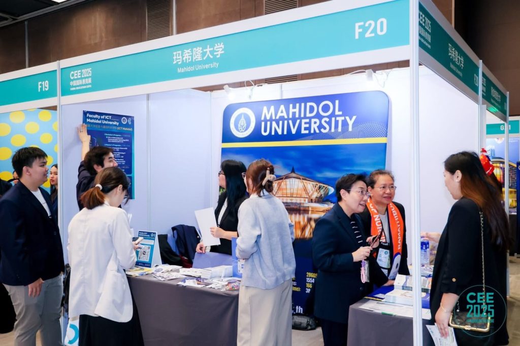 เมื่อวันที่ 6-8 พฤศจิกายน 2568 มหาวิทยาลัยมหิดล ร่วมจัดนิทรรศการในงาน China Education Expo (CEE) 2025 โดยมี คณาจารย์ บุคลากร และผู้เกี่ยวข้อง จากส่วนงานต่าง ๆ ของมหาวิทยาลัยมหิดล เข้าร่วมจัดนิทรรศการ ประกอบด้วย กองวิเทศสัมพันธ์ มหาวิทยาลัยมหิดล โรงเรียนพยาบาลรามาธิบดี คณะแพทยศาสตร์โรงพยาบาลรามธิบดี มหาวิทยาลัยมหิดล คณะเทคโนโลยีสารสนเทศและการสื่อสาร มหาวิทยาลัยมหิดล บัณฑิตวิทยาลัย มหาวิทยาลัยมหิดล สถาบันวิจัยภาษาและวัฒนธรรมเอเชีย มหาวิทยาลัยมหิดล เพื่อร่วมให้ข้อมูลเกี่ยวกับรายละเอียดการเรียนการสอนทั้งในระดับปริญญาตรี และระดับบัณฑิตศึกษา แนะนำแนวทางในการเข้าศึกษาต่อที่ประเทศไทย ขั้นตอนต่างๆ ในการทำวีซ่า และบรรยากาศแการเรียนการสอนและสภาพแวดล้อม ของมหาวิทยาลัยมหิดล ซึ่งจัดโดย China Education Association for International Exchange (CEAIE) ในระหว่างวันที่ 31 ตุลาคม – 9 พฤศจิกายน 2568