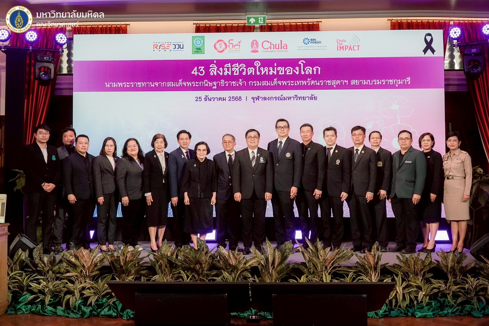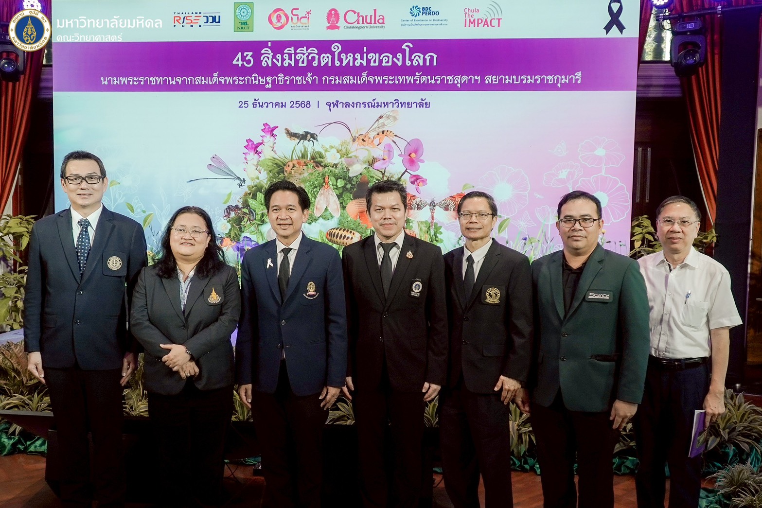 วันที่ 25 ธันวาคม 2568 รองศาสตราจารย์ ดร.ประสิทธิ์ สุวรรณเลิศ คณบดีคณะวิทยาศาสตร์ มหาวิทยาลัยมหิดล พร้อมด้วยผู้บริหารคณะวิทยาศาสตร์ เข้าร่วมงาน Chula the Impact ครั้งที่ 36 เรื่อง “43 สิ่งมีชีวิตใหม่ของโลก” นามพระราชทานจากสมเด็จพระกนิษฐาธิราชเจ้า กรมสมเด็จพระเทพรัตนราชสุดา ฯ สยามบรมราชกุมารี ณ ห้อง 111 อาคารมหาจุฬาลงกรณ์ จุฬาลงกรณ์มหาวิทยาลัย