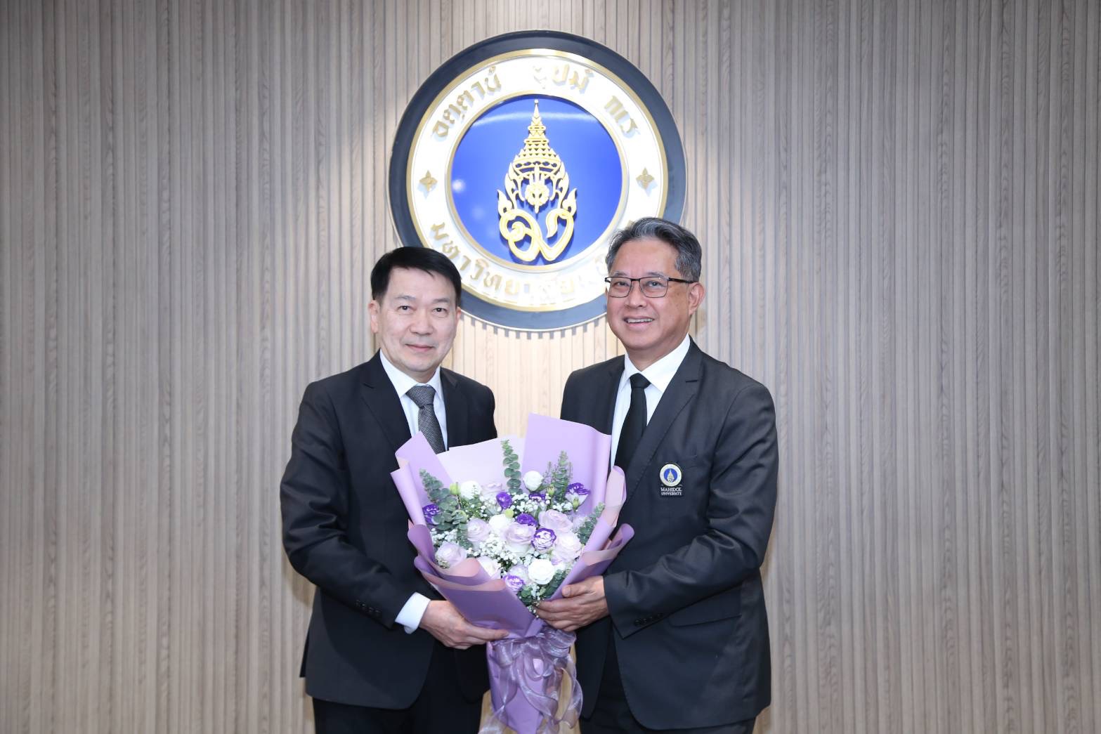 วันที่ 26 พฤศจิกายน 2568 ศาสตราจารย์ นายแพทย์ปิยะมิตร ศรีธรา อธิการบดีมหาวิทยาลัยมหิดล พร้อมด้วยผู้บริหารมหาวิทยาลัย และผู้บริหารส่วนงาน ร่วมแสดงความยินดีในที่ประชุมคณะกรรมการบริหารทรัพยากรบุคคล ครั้งที่ 22/2568 เนื่องในโอกาสที่พระบาทสมเด็จพระเจ้าอยู่หัว ทรงมีพระบรมราชโองการโปรดเกล้าโปรดกระหม่อม แต่งตั้ง ศาสตราจารย์ ดร. เภสัชกรสมภพ ประธานธุรารักษ์ ภาควิชาเภสัชพฤกษศาสตร์ คณะเภสัชศาสตร์ มหาวิทยาลัยมหิดล ให้ดำรงตำแหน่งศาสตราจารย์ สาขาวิชาเภสัชศาสตร์และเทคโนโลยี ตั้งแต่วันที่ 22 กันยายน พ.ศ. 2563 ณ ห้องประชุมศาสตราจารย์เกียรติคุณ นายแพทย์นที รักษ์พลเมือง ชั้น 5 สำนักงานอธิการบดี มหาวิทยาลัยมหิดล ศาลายา และผ่านระบบออนไลน์