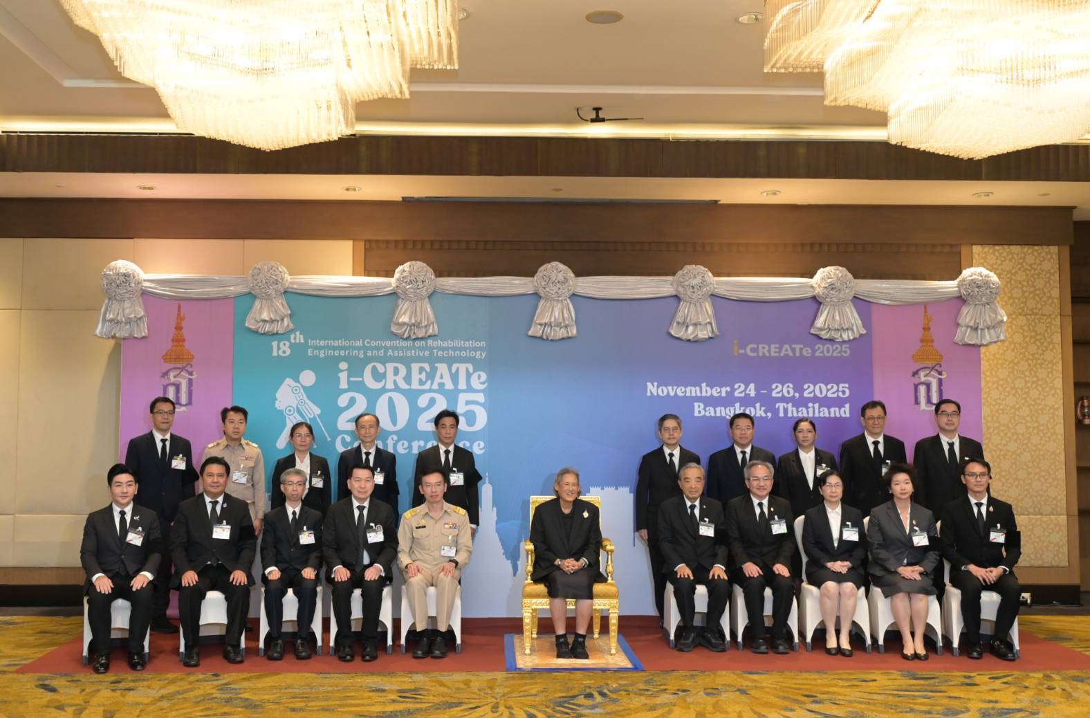 วันที่ 25 พฤศจิกายน 2568 สมเด็จพระกนิษฐาธิราชเจ้า กรมสมเด็จพระเทพรัตนราชสุดา ฯ สยามบรมราชกุมารี เสด็จพระราชดำเนินเป็นองค์ประธานในพิธีเปิดการประชุมวิชาการนานาชาติ เรื่องวิศวกรรมฟื้นฟูสมรรถภาพและเทคโนโลยีสิ่งอำนวยความสะดวก ครั้งที่ 18 (i-CREATe 2025) โดยมี ศาสตราจารย์ นายแพทย์ปิยะมิตร ศรีธรา อธิการบดีมหาวิทยาลัยมหิดล พร้อมด้วย รองศาสตราจารย์ ดร.ธนภัทร์ วานิชานนท์ คณบดีคณะวิศวกรรมศาสตร์ มหาวิทยาลัยมหิดล คณะกรรมการจัดงาน และผู้บริหารมหาวิทยาลัยมหิดล เฝ้ารับเสด็จฯ ณ ห้องคริสตัลฮอลล์ บี ชั้น 3 โรงแรม ดิ แอทธินี โฮเทล แบงค็อก กรุงเทพฯ