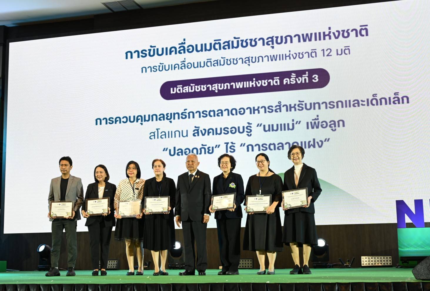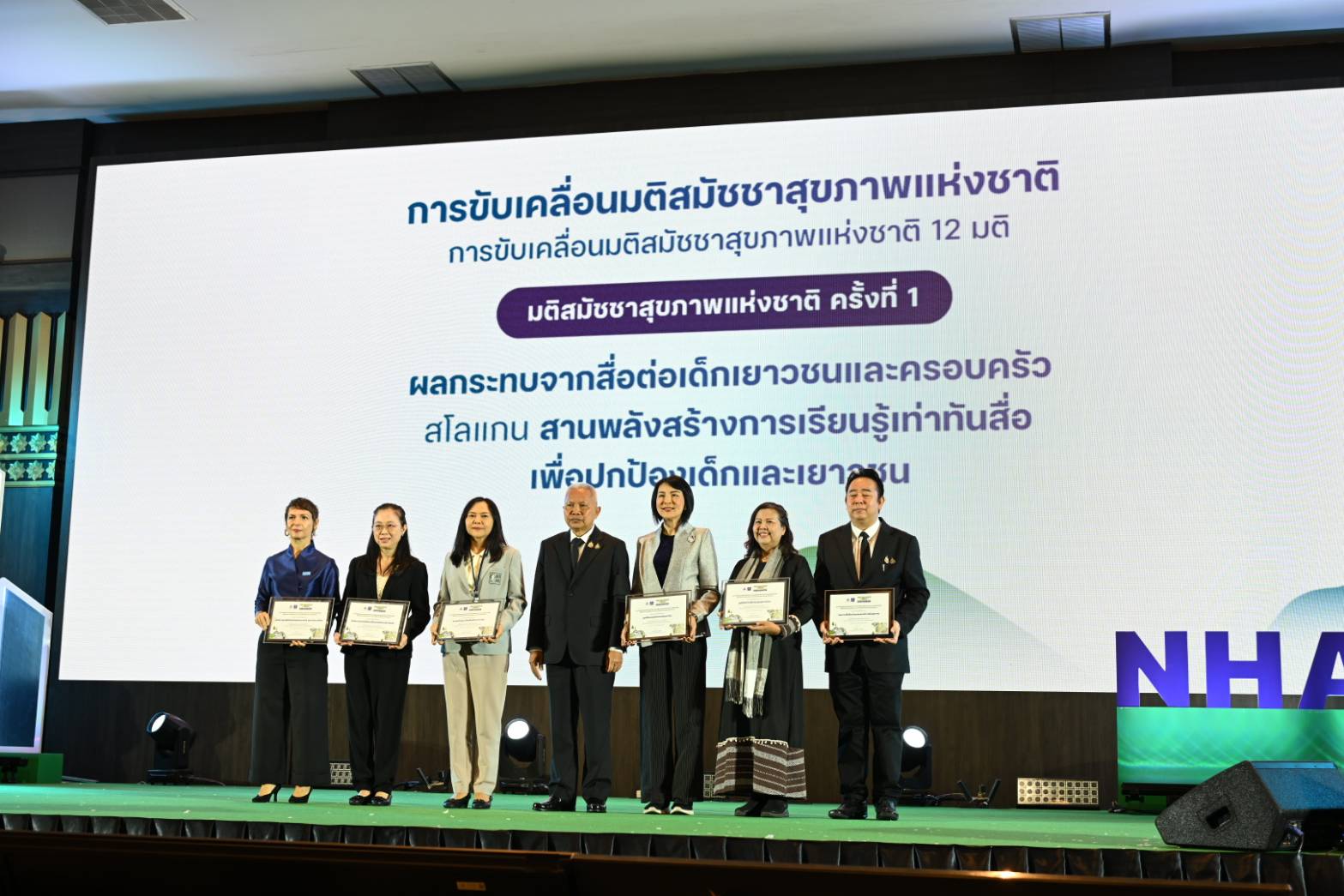 ในการนี้ มีผู้แทนส่วนงานเข้ารับเกียรติบัตรในการสนับสนุนการขับเคลื่อนมติสมัชชาสุขภาพแห่งชาติ 12 มติ ดังนี้