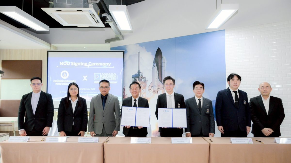 วันที่ 6 พฤศจิกายน 2568 คณะวิศวกรรมศาสตร์ มหาวิทยาลัยมหิดล จัดพิธีลงนามบันทึกข้อตกลงความร่วมมือทางวิชาการ ร่วมกับ บริษัท อนาล็อก ดีไวเซส (ประเทศไทย) จำกัด โดยได้รับเกียรติจาก ศาสตราจารย์ ดร.ยศชนัน วงศ์สวัสดิ์ รองอธิการบดีฝ่ายวิจัย มหาวิทยาลัยมหิดล ร่วมเป็นเกียรติในพิธีลงนาม ระหว่าง รองศาสตราจารย์ ดร.ธนภัทร์ วานิชานนท์ คณบดีคณะวิศวกรรมศาสตร์ มหาวิทยาลัยมหิดล กับ นายเสกสรรค์ จิตตะนุศาสตร์ กรรมการและผู้อำนวยการฝ่ายวิศวกรรมการทดสอบผลิตภัณฑ์ บริษัท อนาล็อก ดีไวเซส (ประเทศไทย) จำกัด พร้อมด้วย อาจารย์ ดร.สุพรรณ ทิพย์ทิพากร หัวหน้าภาควิชาวิศวกรรมไฟฟ้า คณะวิศวกรรมศาสตร์ มหาวิทยาลัยมหิดล คุณณัฐพงศ์ แก้วประดิษฐ์ ผู้อำนวยการฝ่ายปฏิบัติการและการผลิต และคุณสุนทรีย์ จันทร์เงิน ผู้อำนวยการฝ่ายทรัพยากรมนุษย์ บริษัท อนาล็อก ดีไวเซส (ประเทศไทย) จำกัด โดยมี คณะผู้บริหารจากทั้ง 2 หน่วยงานร่วมเป็นเกียรติในพิธี ณ ห้อง Innogineer Studio อาคาร 3 คณะวิศวกรรมศาสตร์ มหาวิทยาลัยมหิดล ศาลายา
