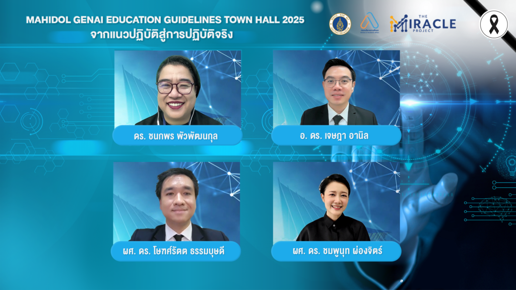 มหาวิทยาลัยมหิดล จัดโครงการ Town Hall Meeting “การประยุกต์ใช้ตามแนวปฏิบัติ Generative AI ในบริบทการศึกษา พ.ศ. 2568” ขับเคลื่อนมาตรฐานการใช้เทคโนโลยี AI อย่างปลอดภัย โปร่งใส และมีธรรมาภิบาล