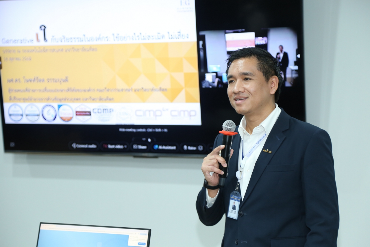 วันที่ 16 ตุลาคม 2568 รองศาสตราจารย์ นายแพทย์เชิดชัย นพมณีจำรัสเลิศ รองอธิการบดีฝ่ายสารสนเทศและดิจิทัลทรานส์ฟอร์เมชัน มหาวิทยาลัยมหิดล เป็นประธานเปิดโครงการอบรมเชิงปฏิบัติการหลักสูตร “Generative AI กับจริยธรรมในองค์กร: ใช้อย่างไรไม่ละเมิด ไม่เสี่ยง” โดยมี ผู้ช่วยศาสตราจารย์ ดร.โษฑศ์รัตต ธรรมบุษดี ผู้ช่วยคณบดีฝ่ายการเปลี่ยนแปลงทางดิจิทัลขององค์กร คณะวิศวกรรมศาสตร์ มหาวิทยาลัยมหิดล เป็นวิทยากรในการบรรยาย เพื่อถ่ายทอดองค์ความรู้และแนวทางปฏิบัติในการใช้งาน Generative AI ที่ถูกต้องให้แก่อาจารย์ นักวิจัย และบุคลากร ของส่วนงาน/หน่วยงานต่าง ๆ ในมหาวิทยาลัยมหิดล ณ ห้องอบรม (Training Room) กองเทคโนโลยีสารสนเทศ ชั้น 1 อาคารสำนักงานอธิการบดี มหาวิทยาลัยมหิดล ศาลายา
