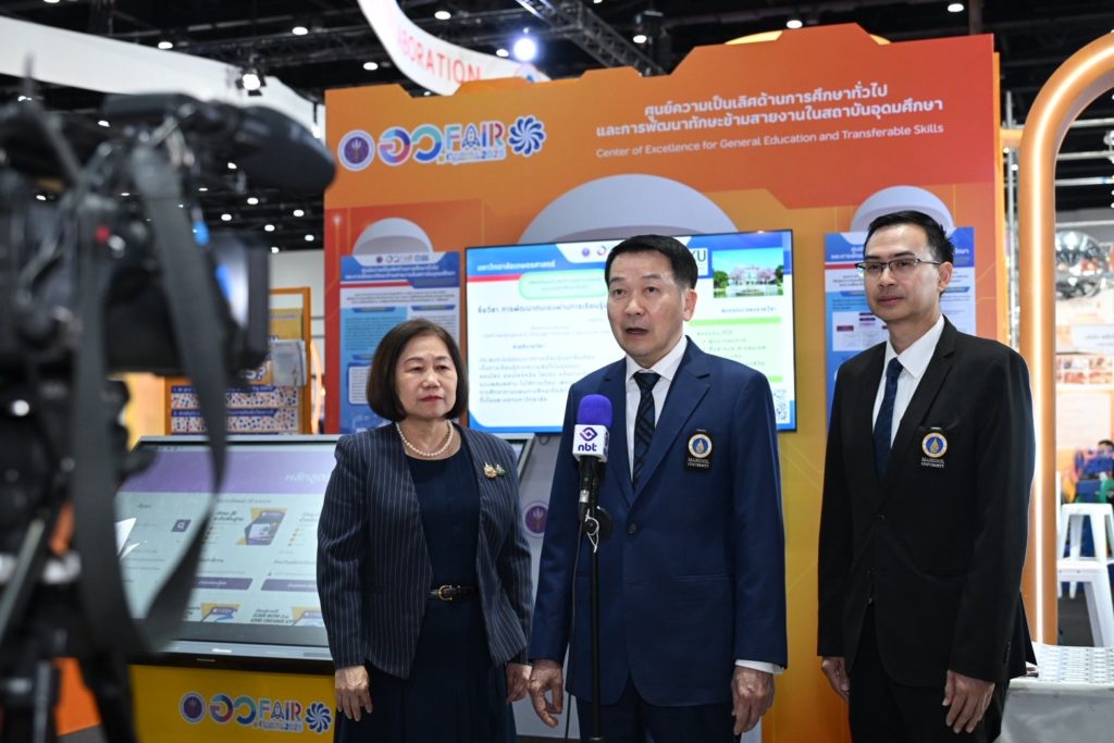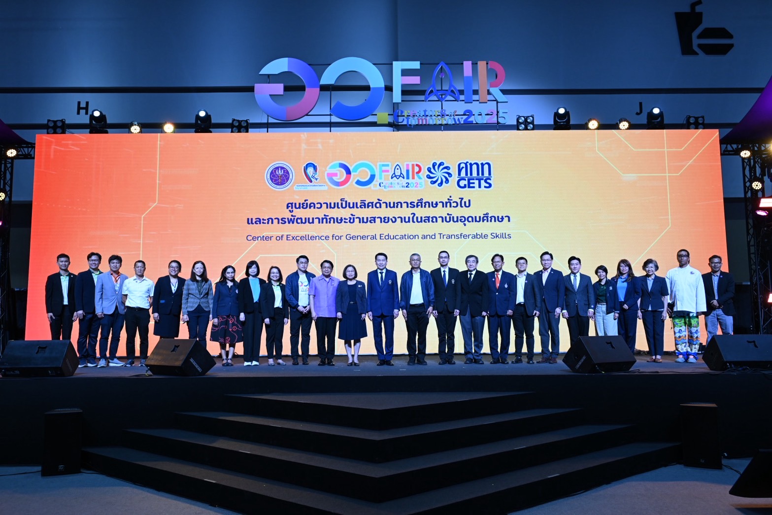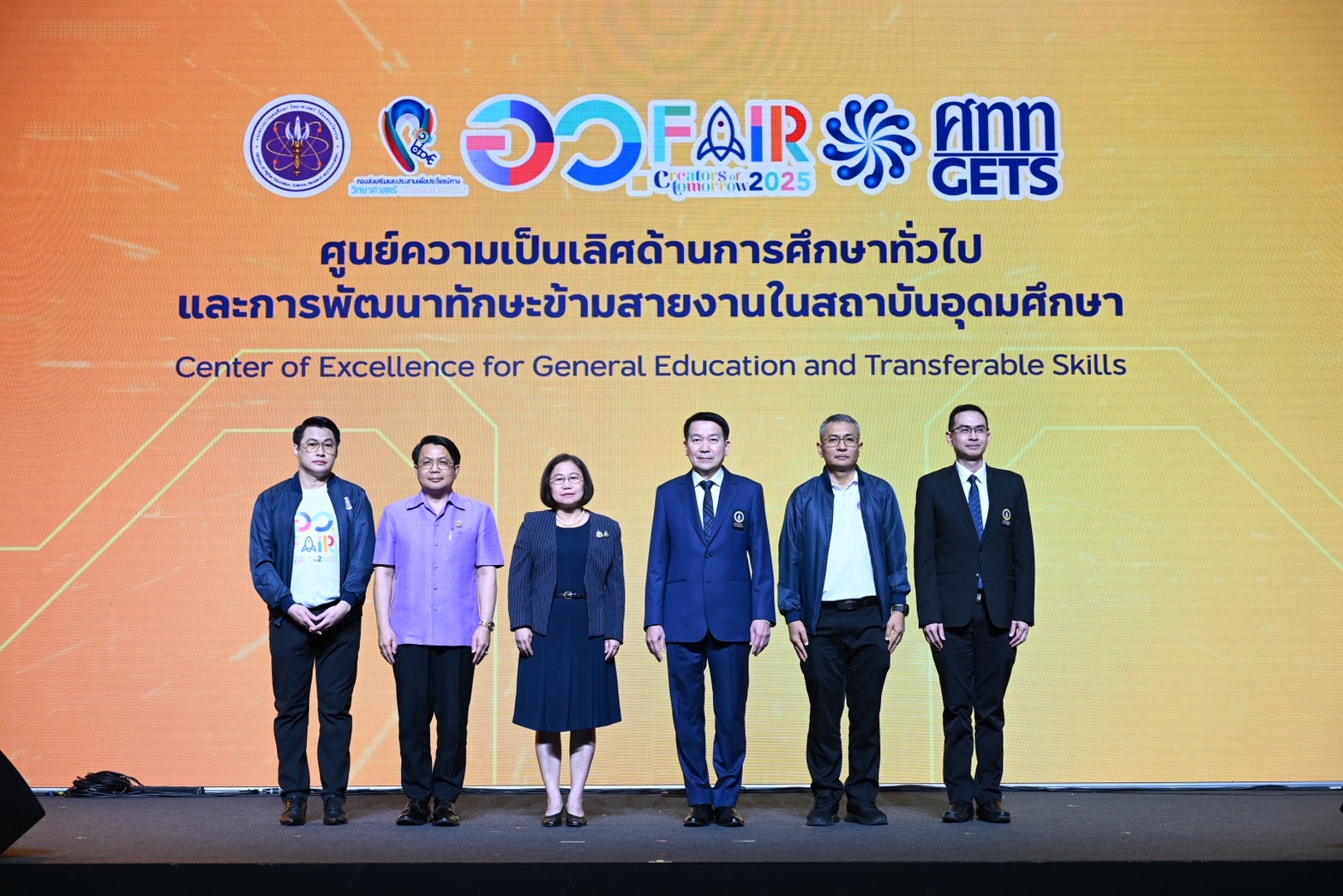 วันที่ 15 สิงหาคม 2568 นางสาวสุณีย์ เลิศเพียรธรรม รองปลัดกระทรวงการอุดมศึกษา วิทยาศาสตร์ วิจัยและนวัตกรรม (อว.) พร้อมด้วย ศาสตราจารย์ นายแพทย์ปิยะมิตร ศรีธรา อธิการบดีมหาวิทยาลัยมหิดล ในฐานะประธานศูนย์ความเป็นเลิศด้านการการศึกษาทั่วไปและการพัฒนาทักษะข้ามสายงานในสถาบันอุดมศึกษา ร่วมแถลงข่าว “เปิดตัวศูนย์ความเป็นเลิศด้านการศึกษาทั่วไปและการพัฒนาทักษะข้ามสายงานในสถาบันอุดมศึกษา” (Center of Excellence for General Education and Transferable Skills: GETS) ในงาน อว. แฟร์ (SCI POWER FOR FUTURE THAILAND) ซึ่งกระทรวงการอุดมศึกษา วิทยาศาสตร์ วิจัยและนวัตกรรม จัดขึ้น เพื่อสร้างเวทีเผยแพร่บทบาทและแนวทางดำเนินงานของศูนย์ความเป็นเลิศฯ ในการส่งเสริมการเรียนรู้ วิจัย และพัฒนาองค์ความรู้ผ่านแพลตฟอร์มการเรียนรู้แก่ผู้เรียนและผู้ที่สนใจ พร้อมส่งเสริมความร่วมมือกับภาคส่วนต่าง ๆ ในการพัฒนาบทเรียนที่ตอบโจทย์ตลาดแรงงาน และเปิดพื้นที่สำหรับแลกเปลี่ยนเรียนรู้เพื่อยกระดับคุณภาพการจัดการเรียนการสอนอย่างมีประสิทธิภาพ โดยมี ศาสตราจารย์ ดร. เภสัชกรเนติ สุขสมบูรณ์ รองอธิการบดีฝ่ายการศึกษา มหาวิทยาลัยมหิดล พร้อมด้วยคณะผู้บริหารส่วนงาน ร่วมเป็นเกียรติในงาน ณ เวทีกลาง (Main Stage) ศูนย์การประชุมแห่งชาติสิริกิติ์ กรุงเทพมหานคร