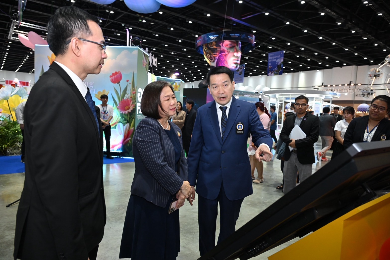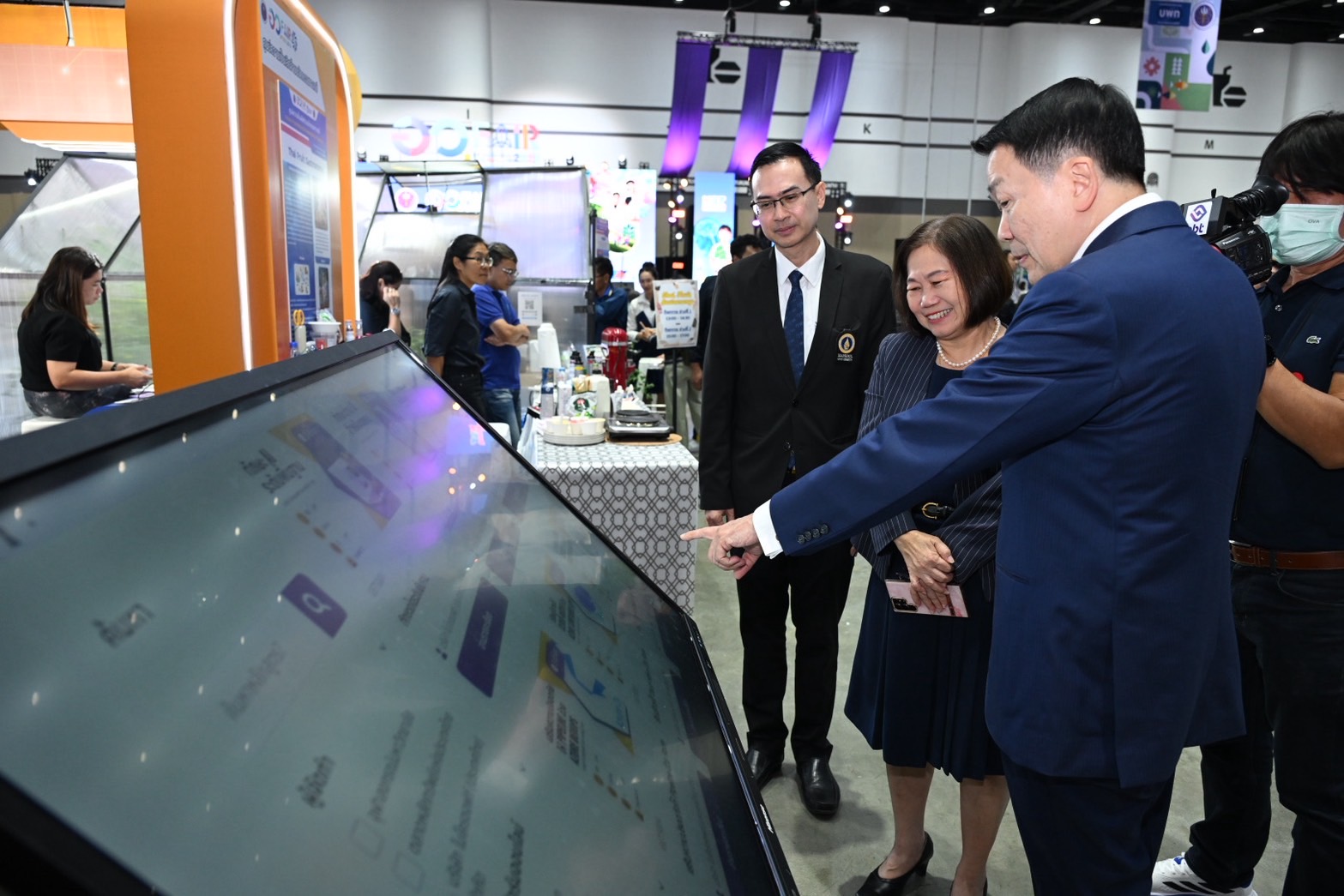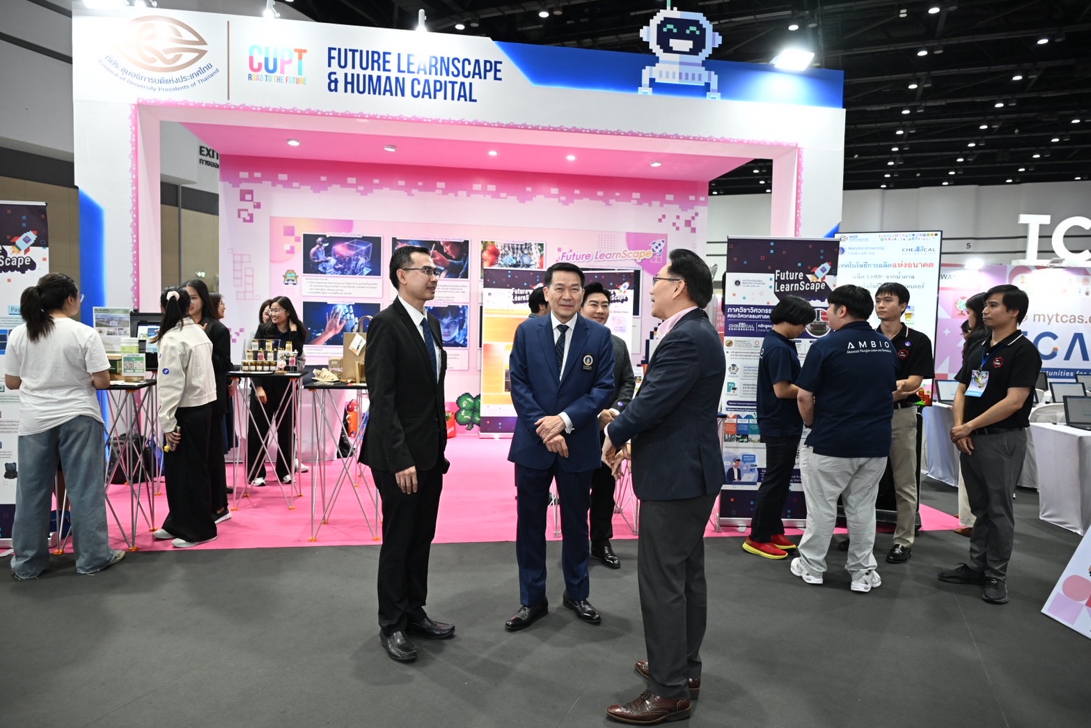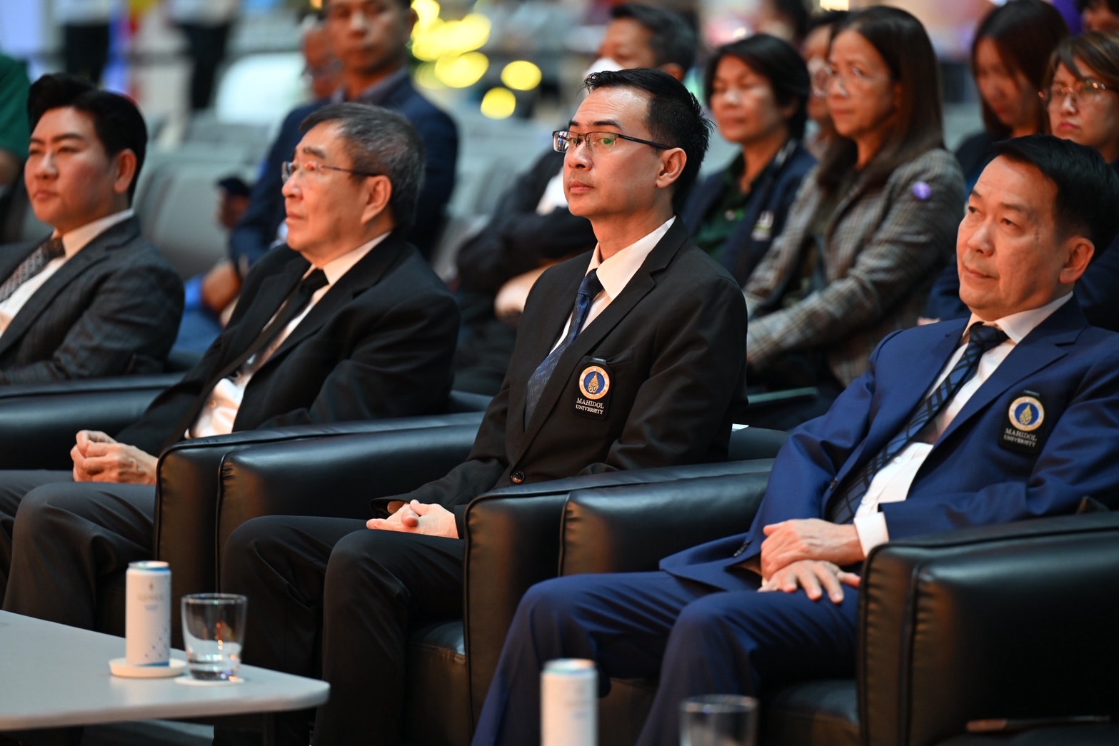 ในโอกาสนี้ ศาสตราจารย์ นายแพทย์ปิยะมิตร ศรีธรา อธิการบดีมหาวิทยาลัยมหิดล พร้อมด้วย ศาสตราจารย์ ดร. เภสัชกรเนติ สุขสมบูรณ์ รองอธิการบดีฝ่ายการศึกษา มหาวิทยาลัยมหิดล ได้เยี่ยมชมนิทรรศการภายในงาน “มหกรรมส่งเสริมการใช้ประโยชน์จากองค์ความรู้ วิจัย และนวัตกรรม (อววน.) และบูธของมหาวิทยาลัยมหิดล ที่ร่วมจัดนิทรรศการการศึกษาใน Zone B: Learning Arcade บูธ Future Learn Scape ของที่ประชุมอธิการบดีแห่งประเทศไทย (ทปอ.) โดยให้ข้อมูลเกี่ยวกับการเรียนรู้แห่งอนาคตและเส้นทางอาชีพใน 10 อุสาหกรรมเป้าหมาย ที่เชื่อมโยงกับหลักสูตรของคณะวิทยาศาสตร์ และคณะวิศวกรรมศาสตร์ของมหาวิทยาลัยมหิดล