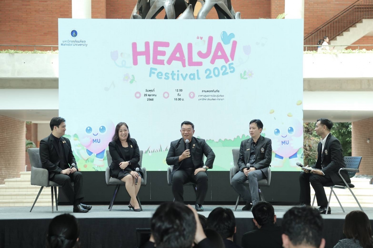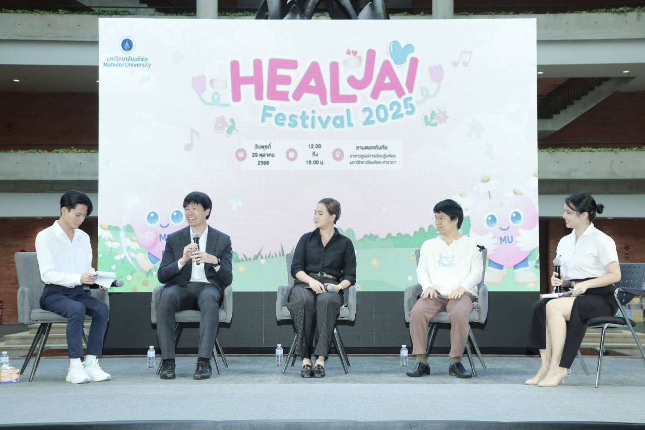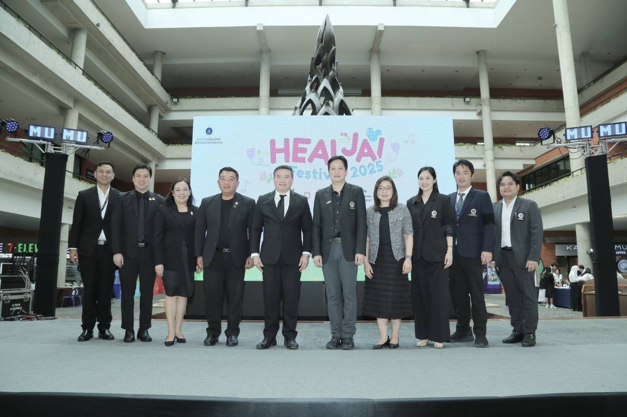 วันที่ 29 ตุลาคม 2568 มหาวิทยาลัยมหิดล โดย กองกิจการนักศึกษา และ ศูนย์จิตตปัญญาศึกษา ร่วมกับ Happy Growth และ ณ สมดุลย์ และภาคีเครือข่าย จัดกิจกรรมโครงการสร้างเสริมสุขภาวะทางใจและปัญญา ครั้งที่ 2 (Heal Jai Festival) เพื่อให้นักศึกษา และบุคลากรได้เรียนรู้เทคนิคการดูแลตัวเองทั้งกายและใจ ให้พร้อมรับมือกับความเครียดและความท้าทายในชีวิตประจำวัน กับหลากหลายกิจกรรม “ฮีลใจ” ที่จะช่วยเสริมสร้างสุขภาวะทางใจและปัญญา ผ่านการบูรณาการศาสตร์ต่าง ๆ อย่างเป็นระบบ เชื่อมโยงกับภาคีเครือข่ายให้เกิดการดูแลสุขภาวะอย่างเป็นองค์รวม โดยมี รองศาสตราจารย์ ดร.สิทธิวัฒน์ เลิศศิริ รองอธิการบดี มหาวิทยาลัยมหิดล เป็นประธานในพิธีเปิด รองศาสตราจารย์ เรืออากาศโท ทันตแพทย์ชัชชัย คุณาวิศรุต รองอธิการบดีฝ่ายกิจการนักศึกษาและศิษย์เก่าสัมพันธ์ มหาวิทยาลัยมหิดล กล่าวรายงานวัตถุประสงค์ โอกาสนี้ ศาสตราจารย์ ดร. เภสัชกรสมภพ ประธานธุรารักษ์ รองอธิการบดีฝ่ายแผนกลยุทธ์ พัฒนาคุณภาพและพันธกิจเพื่อสังคม มหาวิทยาลัยมหิดล พร้อมด้วย รองศาสตราจารย์ นายแพทย์เชิดชัย นพมณีจำรัสเลิศ รองอธิการบดีฝ่ายสารสนเทศและดิจิทัลทรานส์ฟอร์เมชัน มหาวิทยาลัยมหิดล คุณนรา เปาอินทร์ รองอธิการบดีฝ่ายบริหารบุคลากรและพัฒนาองค์กร มหาวิทยาลัยมหิดล ผู้ช่วยอธิการบดีฝ่ายต่าง ๆ และผู้บริหารส่วนงานภายในมหาวิทยาลัยมหิดล เข้าร่วมเป็นเกียรติในงาน ซึ่งมีนักศึกษา อาจารย์ และบุคลากรมหาวิทยาลัยมหิดล และผู้สนใจเข้าร่วมงาน ณ ศูนย์การเรียนรู้มหิดล มหาวิทยาลัยมหิดล ศาลายา