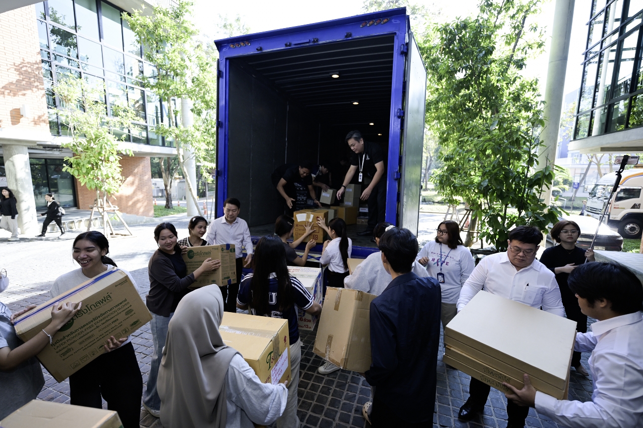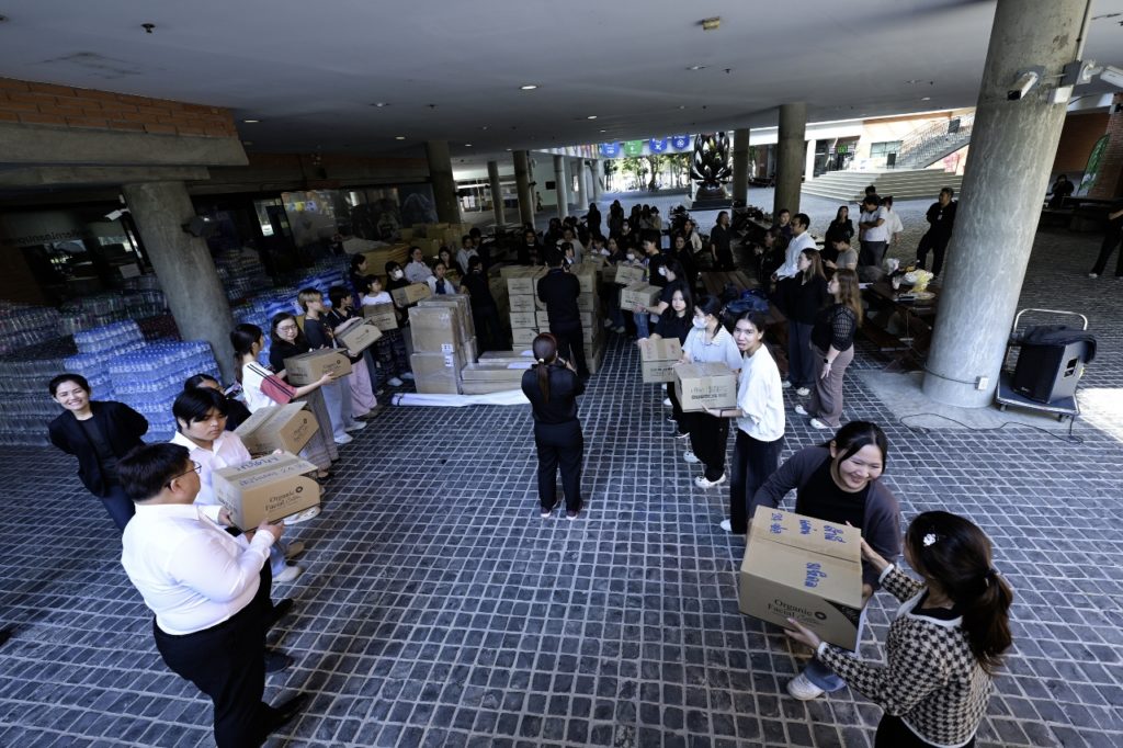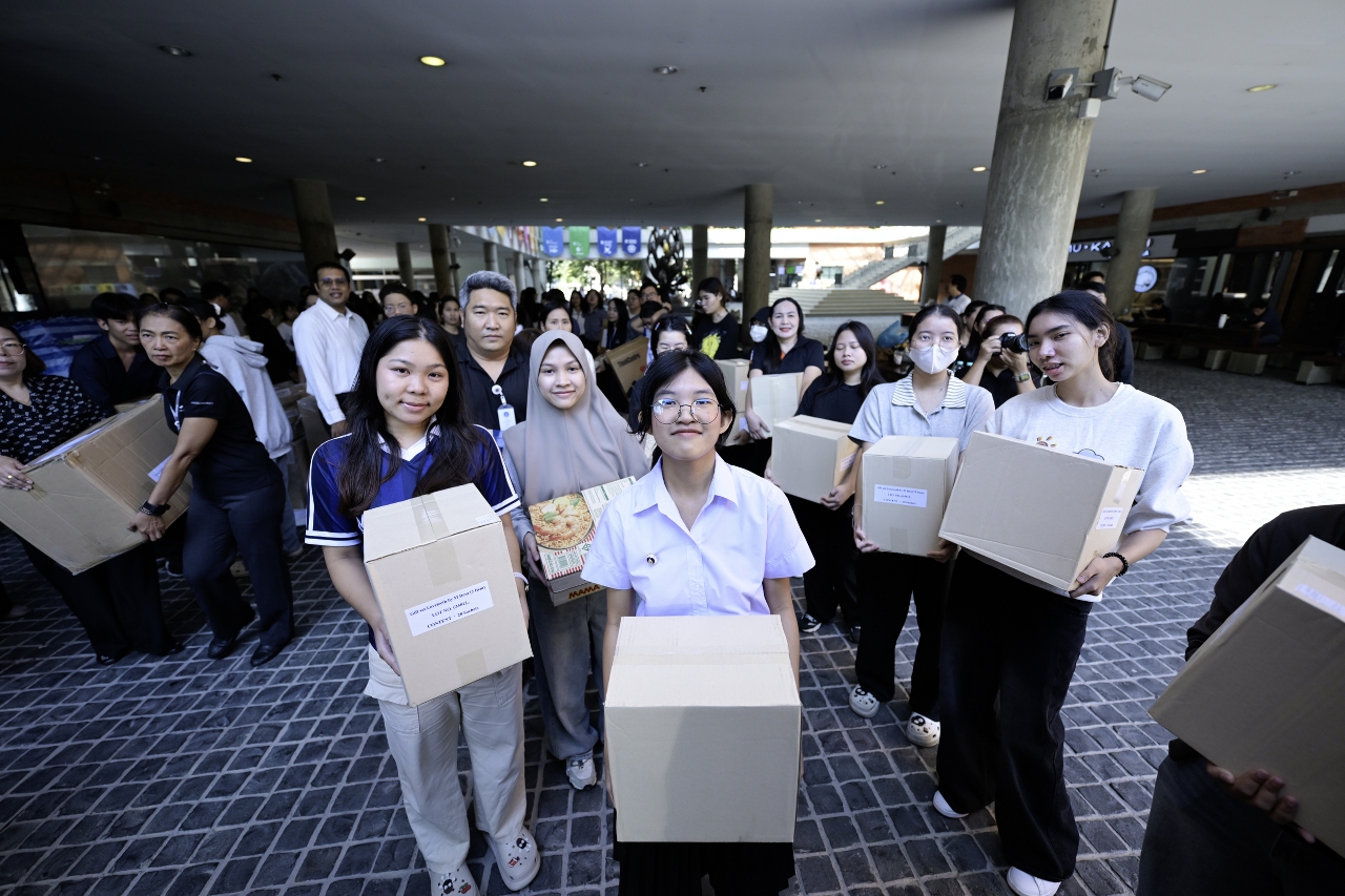 วันที่ 2 ธันวาคม 2568 ศาสตราจารย์ นายแพทย์ปิยะมิตร ศรีธรา อธิการบดีมหาวิทยาลัยมหิดล พร้อมด้วย ดร.ศรายุธ แสงจันทร์ รองอธิการบดีฝ่ายการคลัง รองศาสตราจารย์ เรืออากาศโท ทันตแพทย์ชัชชัย คุณาวิศรุต รองอธิการบดีฝ่ายกิจการนักศึกษาและศิษย์เก่าสัมพันธ์ คุณนรา เปาอินทร์ รองอธิการบดีฝ่ายบริหารบุคลากรและพัฒนาองค์กร และ ผู้ช่วยศาสตราจารย์ นายแพทย์ยุทธนา อุดมพร คณบดีวิทยาลัยวิทยาศาสตร์และเทคโนโลยีการกีฬา พร้อมด้วย หัวหน้าส่วนงาน บุคลากร และนักศึกษาจิตอาสา ร่วมทำกิจกรรมจิตอาสาแพ็คสิ่งของที่ได้รับบริจาคพร้อมส่งต่อไปยัง ศูนย์พักพิงมหาวิทยาลัยสงขลานครินทร์ เพื่อช่วยเหลือผู้ประสบอุทกภัยในภาคใต้ ซึ่งมหาวิทยาลัยมหิดล ร่วมกับ มูลนิธิมหาวิทยาลัยมหิดลในพระราชูปถัมภ์ฯ เปิดรับบริจาค ตั้งแต่วันที่ 25 – 30 พฤศจิกายน 2568 โดยมีนักศึกษา บุคลากร ชุมชน และผู้มีจิตศรัทธาโดยรอบมหาวิทยาลัย ร่วมกันบริจาคข้าวสาร อาหารแห้ง ยารักษาโรค สิ่งของที่จำเป็นในการดำรงชีวิต และพร้อมทั้งเงินบริจาคจำนวน 868,756.90 บาท เพื่อช่วยเหลือผู้ประสบภัยในพื้นที่ภาคใต้ ณ อาคารศูนย์การเรียนรู้มหิดล มหาวิทยาลัยมหิดล ศาลายา