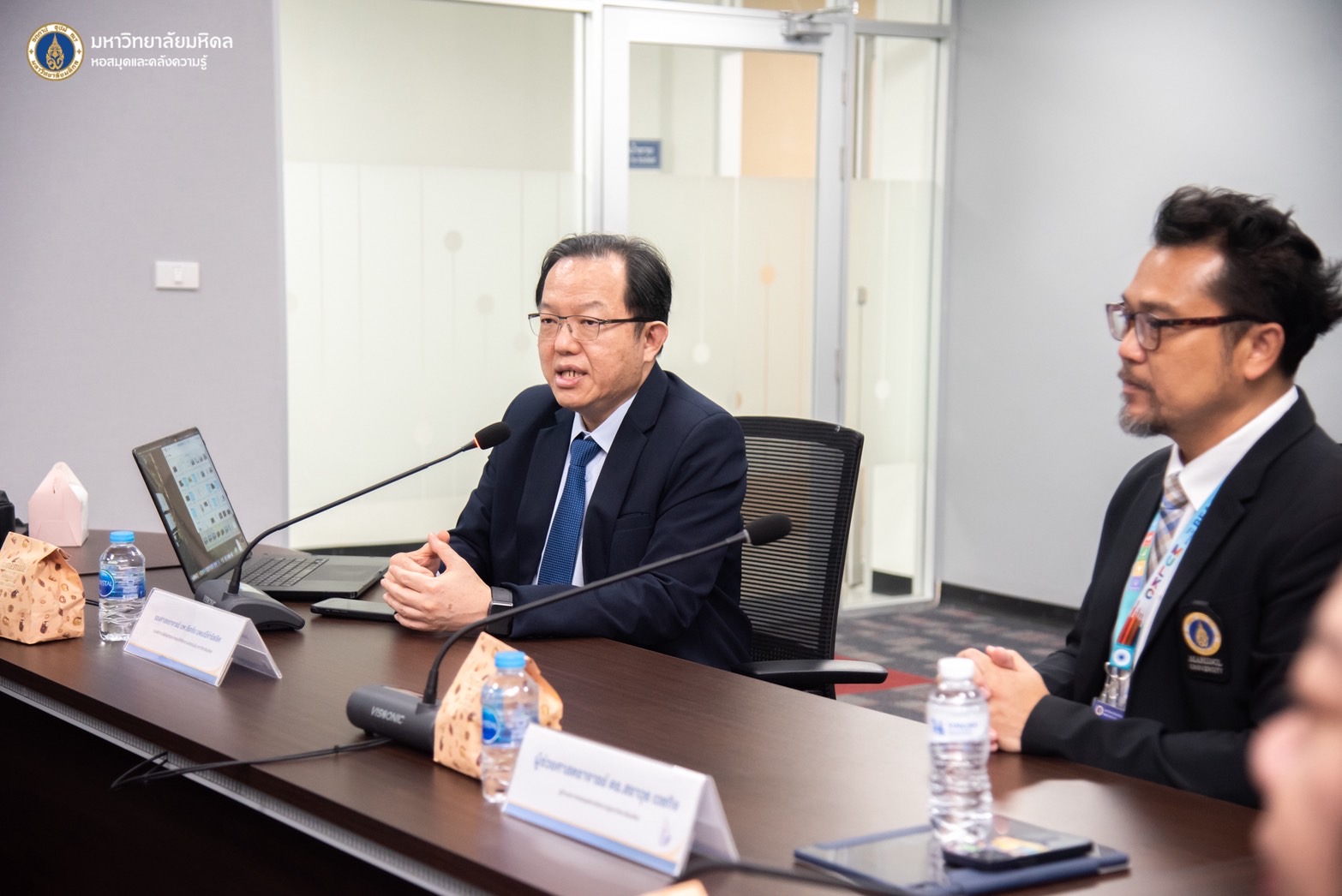 วันที่ 15 สิงหาคม 2568 รองศาสตราจารย์ นายแพทย์เชิดชัย นพมณีจำรัสเลิศ รองอธิการบดีฝ่ายสารสนเทศและดิจิทัลทรานส์ฟอร์เมชัน มหาวิทยาลัยมหิดล พร้อมคณะทำงานจากกองเทคโนโลยีสารสนเทศ มหาวิทยาลัยมหิดล เข้าตรวจเยี่ยมสำรวจและประเมินการบริหารจัดการสารสนเทศของส่วนงาน (IT Visit) ประจำปี 2568 ของหอสมุดและคลังความรู้มหาวิทยาลัยมหิดล โดยมี ผู้ช่วยศาสตราจารย์ ดร.สราวุธ เวชกิจ ผู้อำนวยการหอสมุดและคลังความรู้มหาวิทยาลัยมหิดล พร้อมด้วยคณะผู้บริหาร และบุคลากรหอสมุดและคลังความรู้มหาวิทยาลัยมหิดล ให้การต้อนรับ เพื่อรับทราบและทำความเข้าใจสถานะปัจจุบันของระบบและโครงสร้างพื้นฐานด้านสารสนเทศทั้งหมด รวมถึงการเตรียมความพร้อมและการนำเทคโนโลยีปัญญาประดิษฐ์ (AI) มาประยุกต์ใช้ในด้านการศึกษา การวิจัย และการบริการวิชาการ มุ่งเน้นการประเมินมาตรการความมั่นคงปลอดภัยทางไซเบอร์และการปฏิบัติตามกฎหมายคุ้มครองข้อมูลส่วนบุคคล ณ ห้องประชุม 2 ชั้น 3 หอสมุดและคลังความรู้ มหาวิทยาลัยมหิดล และรูปแบบออนไลน์ผ่าน Webex Meetings