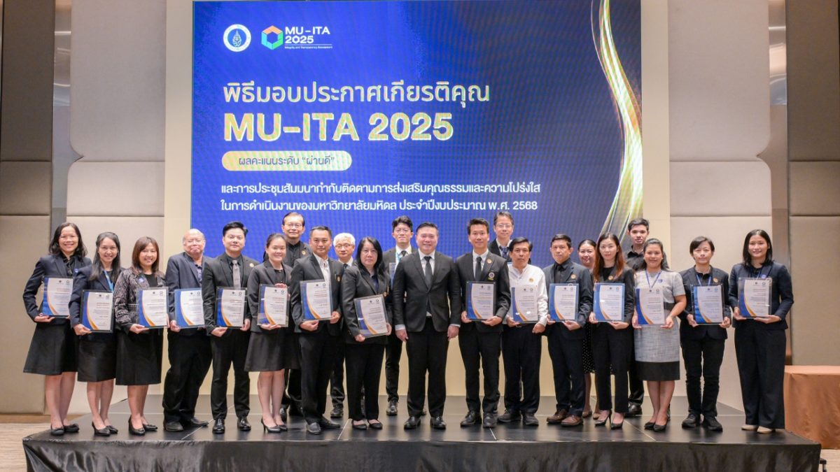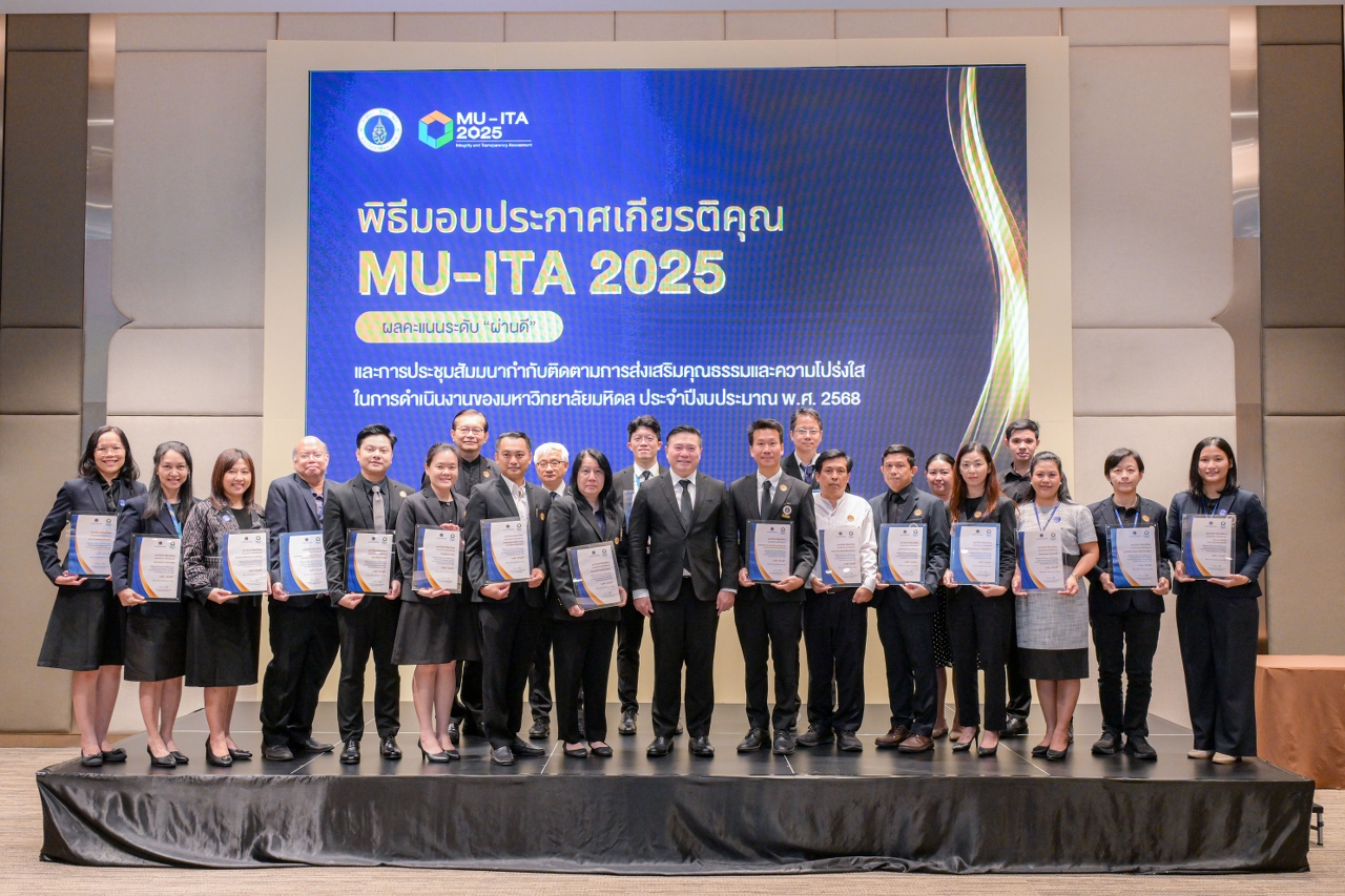ภายในงาน มีพิธีมอบใบประกาศเกียรติคุณในการประเมินคุณธรรมและความโปร่งใสในการดำเนินงานของมหาวิทยาลัยมหิดล ประจำปีงบประมาณ พ.ศ. 2568