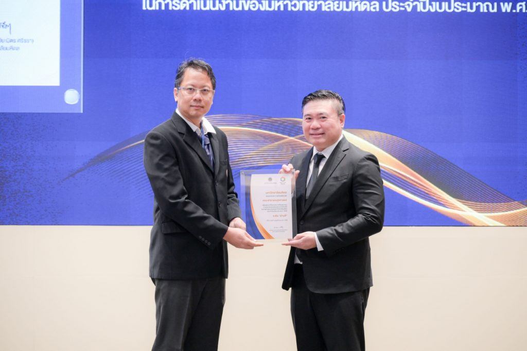 ภายในงาน มีพิธีมอบใบประกาศเกียรติคุณในการประเมินคุณธรรมและความโปร่งใสในการดำเนินงานของมหาวิทยาลัยมหิดล ประจำปีงบประมาณ พ.ศ. 2568