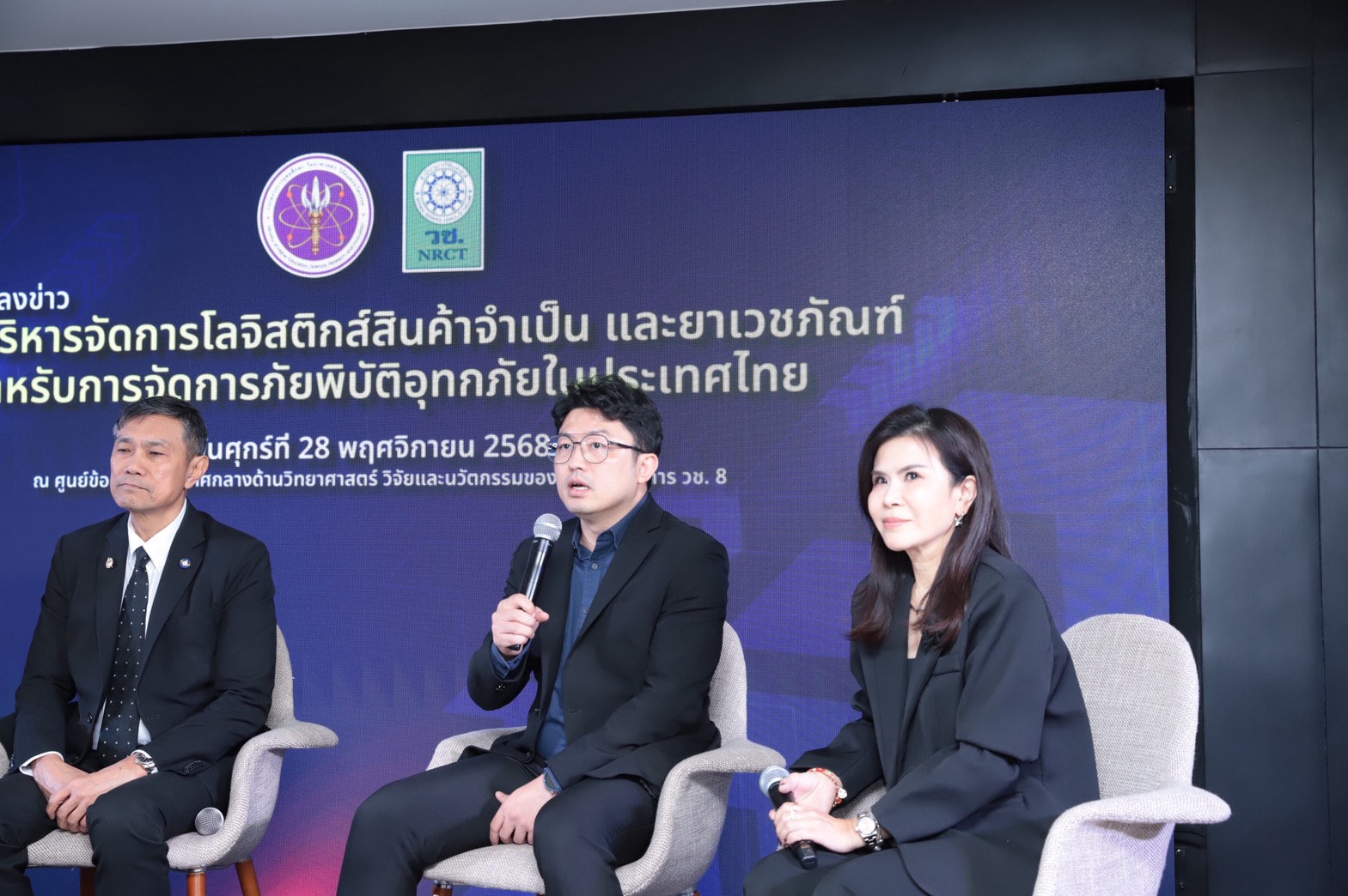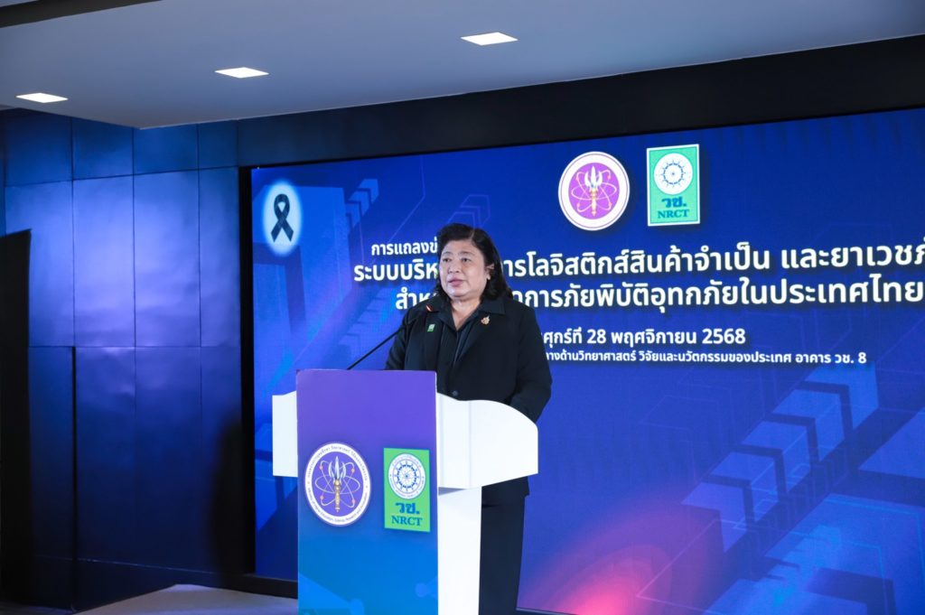 วันที่ 28 พฤศจิกายน 2568 สำนักงานการวิจัยแห่งชาติ (วช.) กระทรวงการอุดมศึกษา วิทยาศาสตร์ วิจัยและนวัตกรรม จัดงานแถลงข่าว “ระบบบริหารจัดการโลจิสติกส์สินค้าจำเป็น และยาเวชภัณฑ์สำหรับการจัดการภัยพิบัติอุทกภัยในประเทศไทย” โดยมี ดร.วิภารัตน์ ดีอ่อง ผู้อำนวยการสำนักงานวิจัยแห่งชาติ เป็นประธานการแถลงข่าว พร้อมด้วย รองศาสตราจารย์ ดร.ธนภัทร์ วานิชานนท์ คณบดีคณะวิศวกรรมศาสตร์มหาวิทยาลัยมหิดล และรองศาสตราจารย์ ดร.ดวงพรรณ กริชชาญชัย หัวหน้าศูนย์การจัดการโลจิสติกส์และโซ่อุปทานสุขภาพ คณะวิศวกรรมศาสตร์ มหาวิทยาลัยมหิดล ร่วมการแถลงข่าว เพื่อนำระบบ “Smart Medical Supply” แพลตฟอร์มกลางในการจัดการโลจิสติกส์ มาประยุกต์ใช้ในช่วงสถานการณ์ภัยพิบัติอุทกภัยในประเทศไทย โดยทีมนักวิจัยคณะวิศวกรรมศาสตร์ มหาวิทยาลัยมหิดล ร่วมกับ สมาพันธ์โลจิสติกส์ไทย มีแนวคิดที่จะนำแพลตฟอร์มดังกล่าว ไปปรับใช้ในสถานการณ์น้ำท่วมหาดใหญ่เพื่อส่งมอบสิ่งของ สินค้า จากจุดรับบริจาคกระจายไปสู่โรงพยาบาลหรือศูนย์พักพิง เพื่อแก้ไขปัญหาการได้รับสิ่งของ/ สินค้า ที่ไม่ตรงตามความต้องการ หรือแม้กระทั่งการกระจุกตัวของสิ่งของบริจาคต่อไป