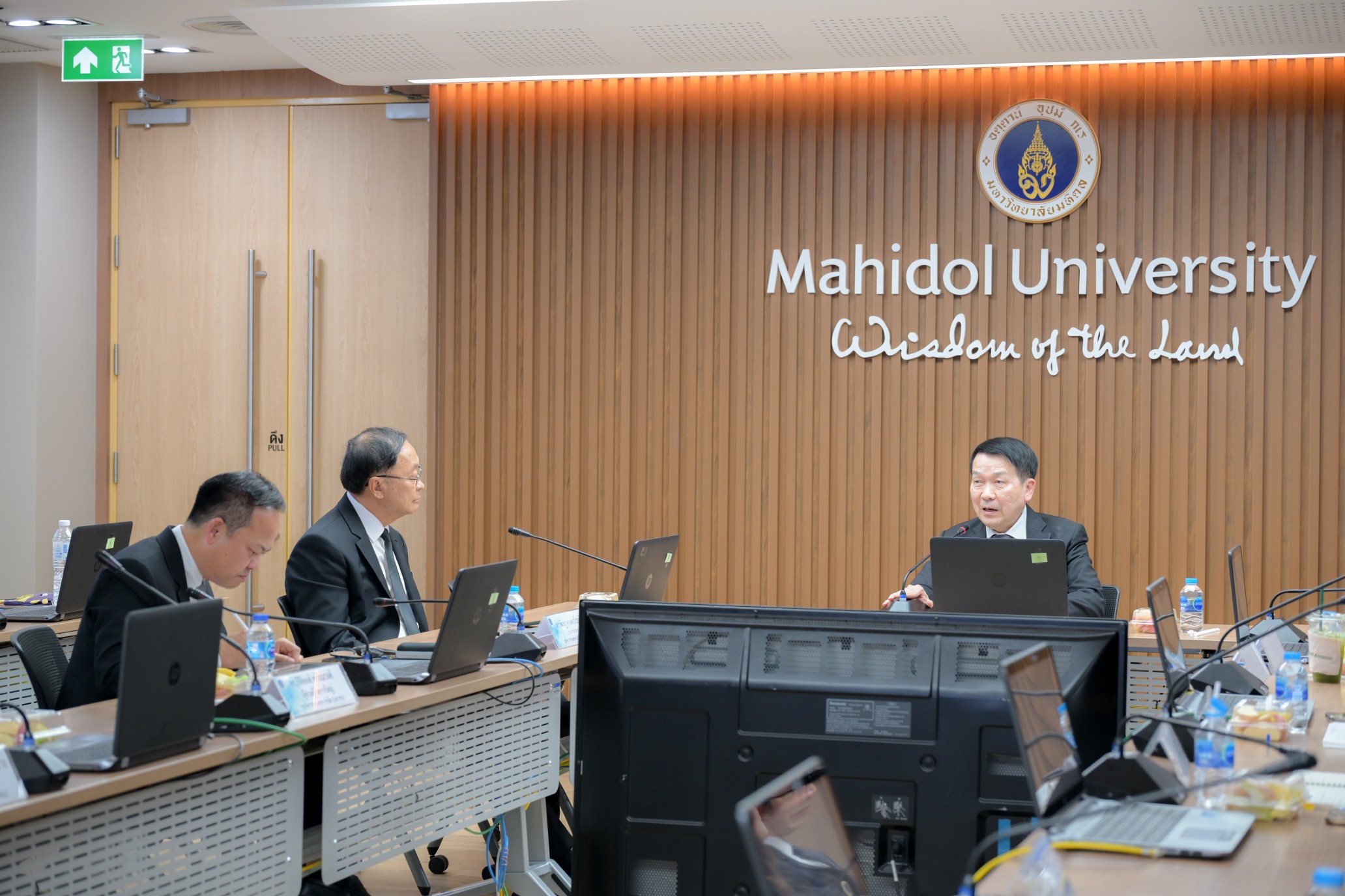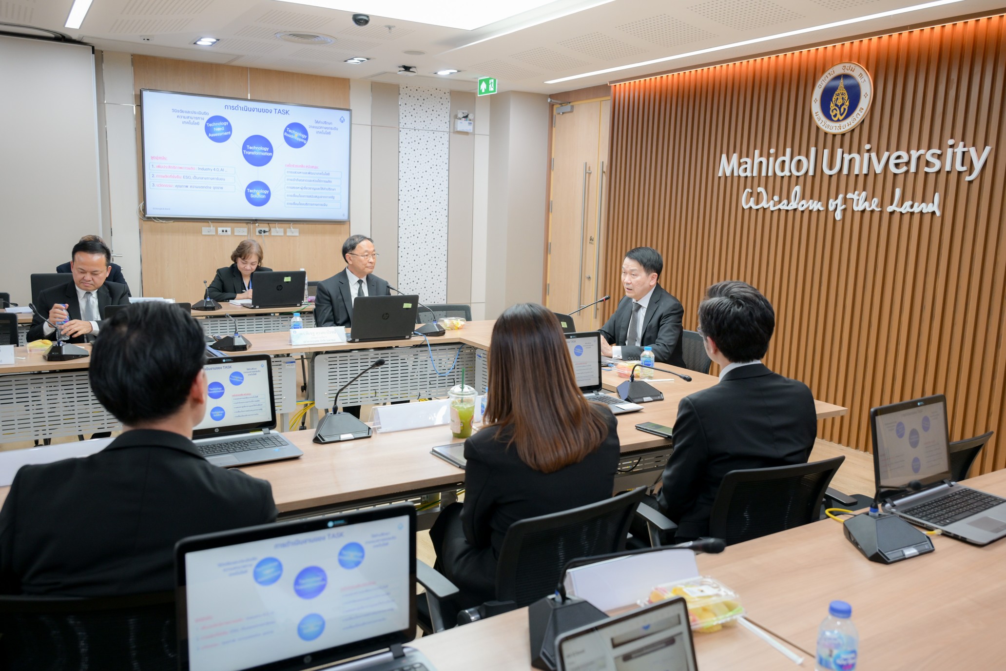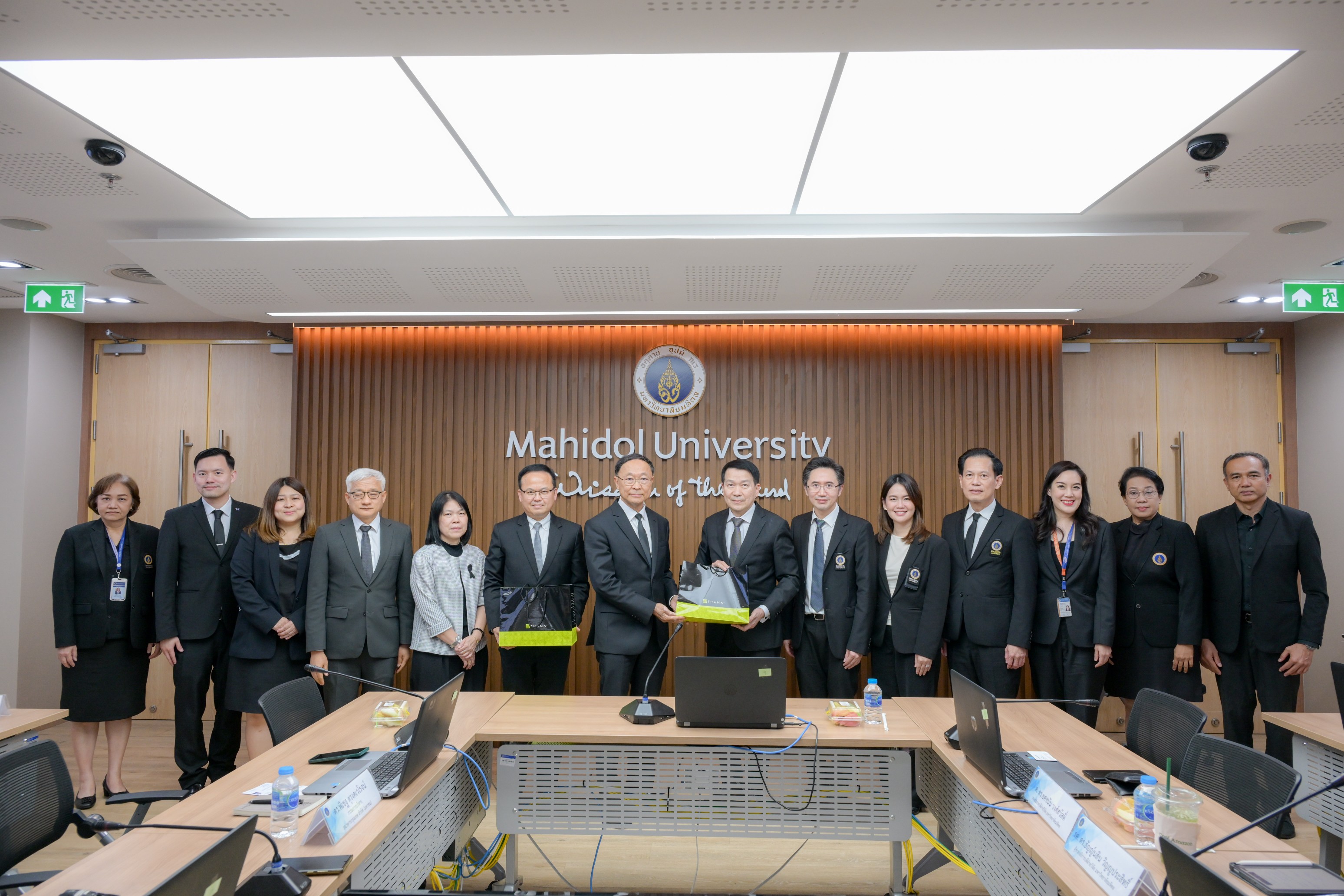 วันที่ 10 พฤศจิกายน 2568 ศาสตราจารย์ นายแพทย์ปิยะมิตร ศรีธรา อธิการบดีมหาวิทยาลัยมหิดล เป็นประธานในการประชุมหารือความร่วมมือระหว่างมหาวิทยาลัยมหิดล กับ ธนาคารกรุงเทพ จำกัด (มหาชน) เพื่อสร้างคุณค่าใหม่และแหล่งรายได้ใหม่ให้กับผู้ประกอบการ SMEs โดย ดร.พิเชฐ ดุรงคเวโรจน์ กรรมการบริหาร ธนาคารกรุงเทพ จำกัด (มหาชน) ดร.กิติพงค์ พร้อมวงค์ ผู้ช่วยผู้จัดการใหญ่ ธนาคารกรุงเทพ จำกัด (มหาชน) และ ดร.โสภาพรรณ สัญญาณเสนาะ Vice President ธนาคารกรุงเทพ จำกัด (มหาชน) โอกาสนี้ ศาสตราจารย์ ดร.ยศชนัน วงศ์สวัสดิ์ รองอธิการบดีฝ่ายวิจัย มหาวิทยาลัยมหิดล พร้อมด้วย รองศาสตราจารย์ ดร.ธัญญ์นลิน วิญญูประสิทธิ์ ผู้ช่วยอธิการบดีฝ่ายวิจัย มหาวิทยาลัยมหิดล อาจารย์ ดร.เจษฎา อานิล ผู้ช่วยอธิการบดีฝ่ายการศึกษา มหาวิทยาลัยมหิดล รองศาสตราจารย์ ดร.ชลัท ศานติวรางคณา ผู้อำนวยการสถาบันโภชนาการ ดร.พัฒนศักดิ์ มงคลวัฒน์ คณบดีคณะเทคโนโลยีสารสนเทศและการสื่อสาร รองศาสตราจารย์ ดร.ปรารถนา ปุณณกิติเกษม คณบดีวิทยาลัยการจัดการ รองศาสตราจารย์ ดร.วิริยะ เตชะรุ่งโรจน์ ผู้อำนวยการสถาบันบริหารจัดการเทคโนโลยีและนวัตกรรม และคณะผู้บริหารจากส่วนงานมหาวิทยาลัยมหิดล จาก คณะวิศวกรรมศาสตร์ คณะสิ่งแวดล้อมและทรัพยากรศาสตร์ และคณะสาธารณสุขศาสตร์ เข้าร่วมหารือพร้อมนำเสนอข้อมูล ณ ห้องประชุม 530 สำนักงานอธิการบดี มหาวิทยาลัยมหิดล ศาลายา