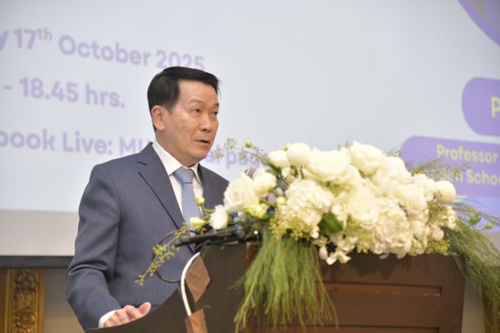 วันที่ 17 ตุลาคม 2568 ศาสตราจารย์คลินิกเกียรติคุณ นายแพทย์ปิยะสกล สกลสัตยาทร นายกสภามหาวิทยาลัยมหิดล กล่าวต้อนรับผู้เข้าร่วมงาน โดยมี ศาสตราจารย์ นายแพทย์ปิยะมิตร ศรีธรา อธิการบดีมหาวิทยาลัยมหิดล เป็นประธานในการกล่าวเปิด งานปาฐกถาพิเศษ “Commemorative Retirement Lecture by Professor Anne Mills” โอกาสนี้ได้รับเกียรติจาก Professor Anne Mills, Professor of Health Economics and Policy, London School of Hygiene and Tropical Medicine สหราชอาณาจักร ในฐานะผู้ได้รับรางวัลสมเด็จเจ้าฟ้ามหิดล ปี 2552 สาขาการแพทย์ ปาฐกถาพิเศษในหัวข้อ The development of health economics and policy knowledge and expertise in Thailand 1980 – 2025 โดยมี คณะผู้บริหารมหาวิทยาลัยมหิดล ผู้บริหารส่วนงาน คณาจารย์ นักวิจัย เข้าร่วมเป็นเกียรติในงาน ณ ห้องท่าจีน โรงแรมแมนดาริน โอเรียนเต็ล กรุงเทพฯ