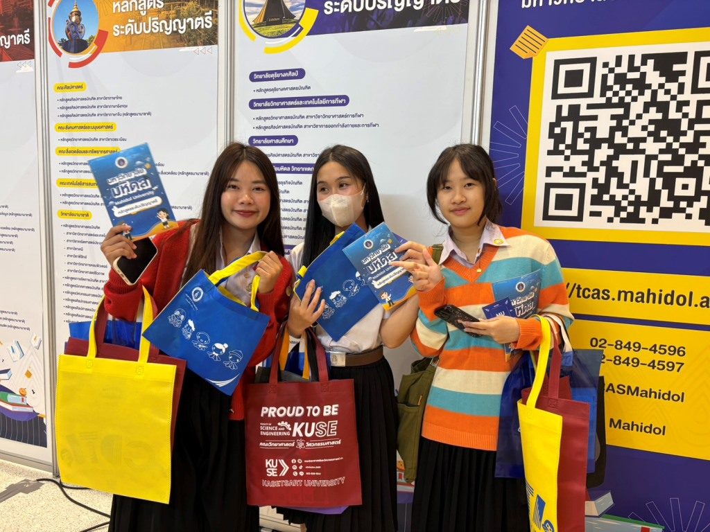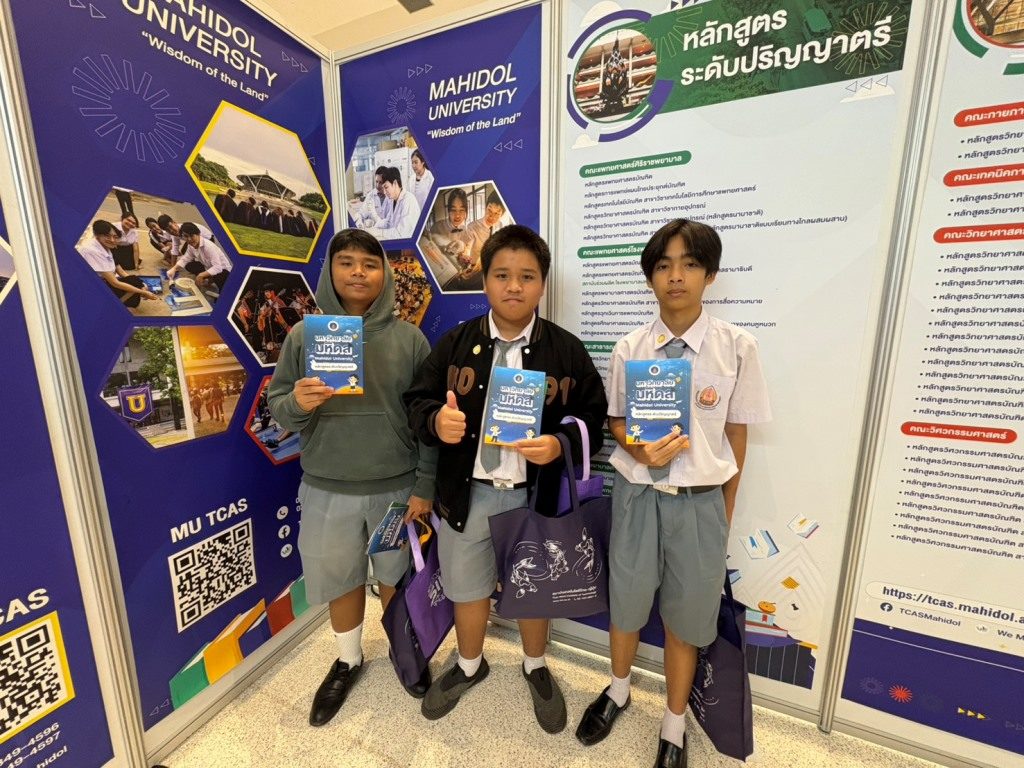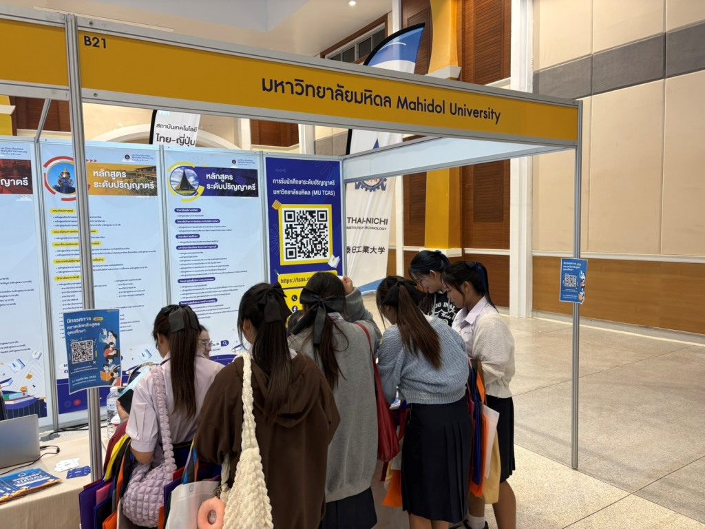 วันที่ 6-7 พฤศจิกายน 2568 มหาวิทยาลัยมหิดล เข้าร่วมจัดแสดงนิทรรศการศึกษาระดับปริญญาตรี ในงาน “ตลาดนัดหลักสูตรอุดมศึกษา” ครั้งที่ 27 ณ หอประชุมวชิรบพิตร มหาวิทยาลัยนครพนม จังหวัดนครพนม โดยมีสถาบันการศึกษาทั้งภาครัฐและเอกชนเข้าร่วมกว่า 50 หน่วยงาน และมีนักเรียน อาจารย์แนะแนว และผู้ปกครองจากพื้นที่ภาคตะวันออกเฉียงเหนือ (ตอนบน) เข้าร่วมงานประมาณ 5,000 คน โอกาสนี้ เจ้าหน้าที่กองบริหารการศึกษา และงานสื่อสารองค์กร มหาวิทยาลัยมหิดล ร่วมให้ข้อมูลเกี่ยวกับรายละเอียดจำนวนการรับในแต่ละรอบในหลักสูตรต่าง ๆ คุณสมบัติผู้สมัคร และเกณฑ์ในการคัดเลือกบุคคลเข้าศึกษาในสถาบันอุดมศึกษา (TCAS) ปีการศึกษา 2569 เพื่อช่วยให้นักเรียนและผู้ปกครองสามารถวางแผนการศึกษาต่อได้อย่างเหมาะสม