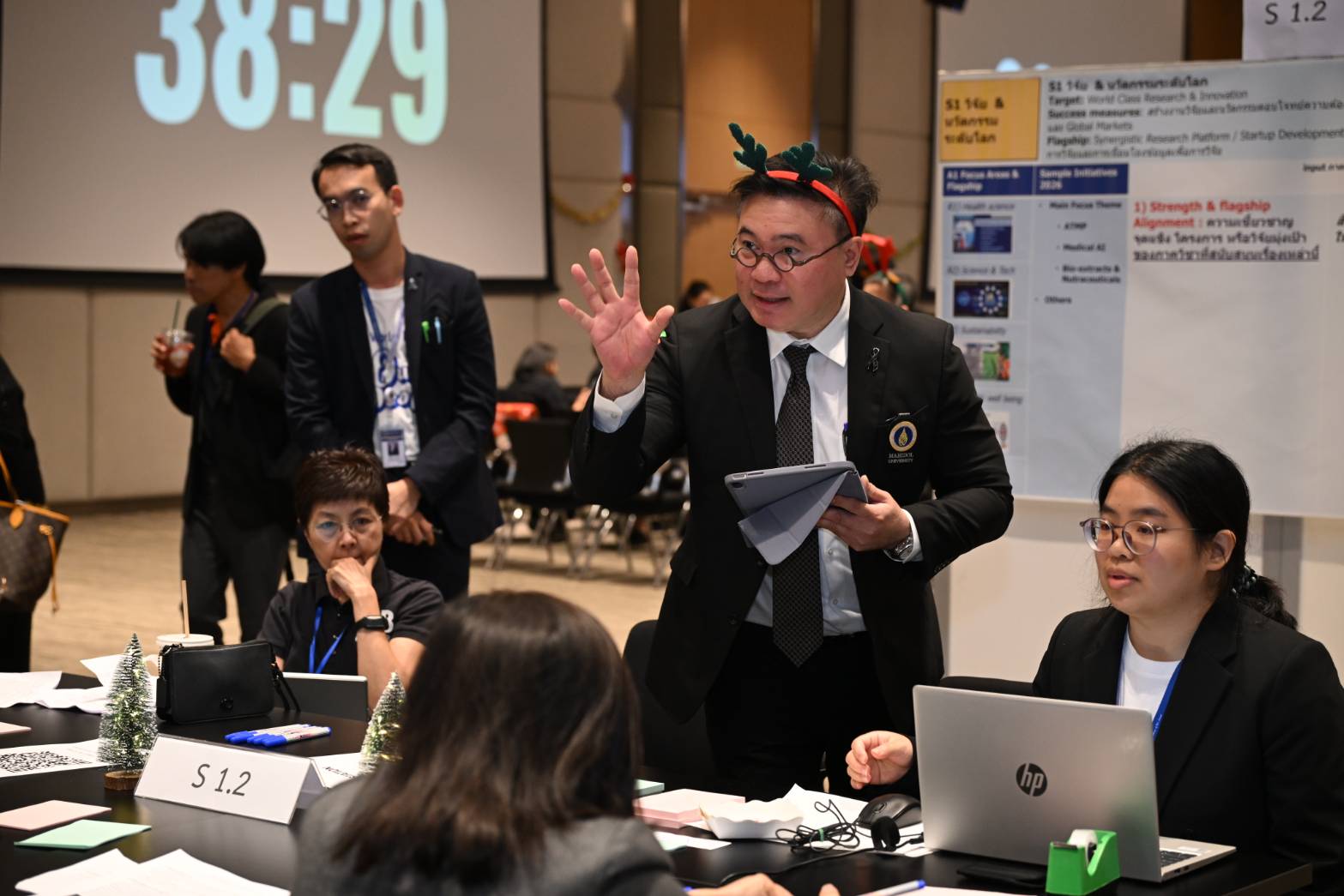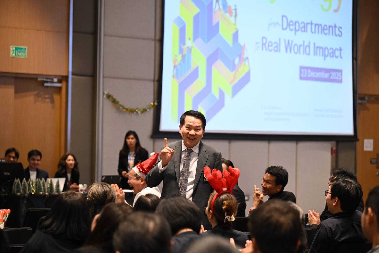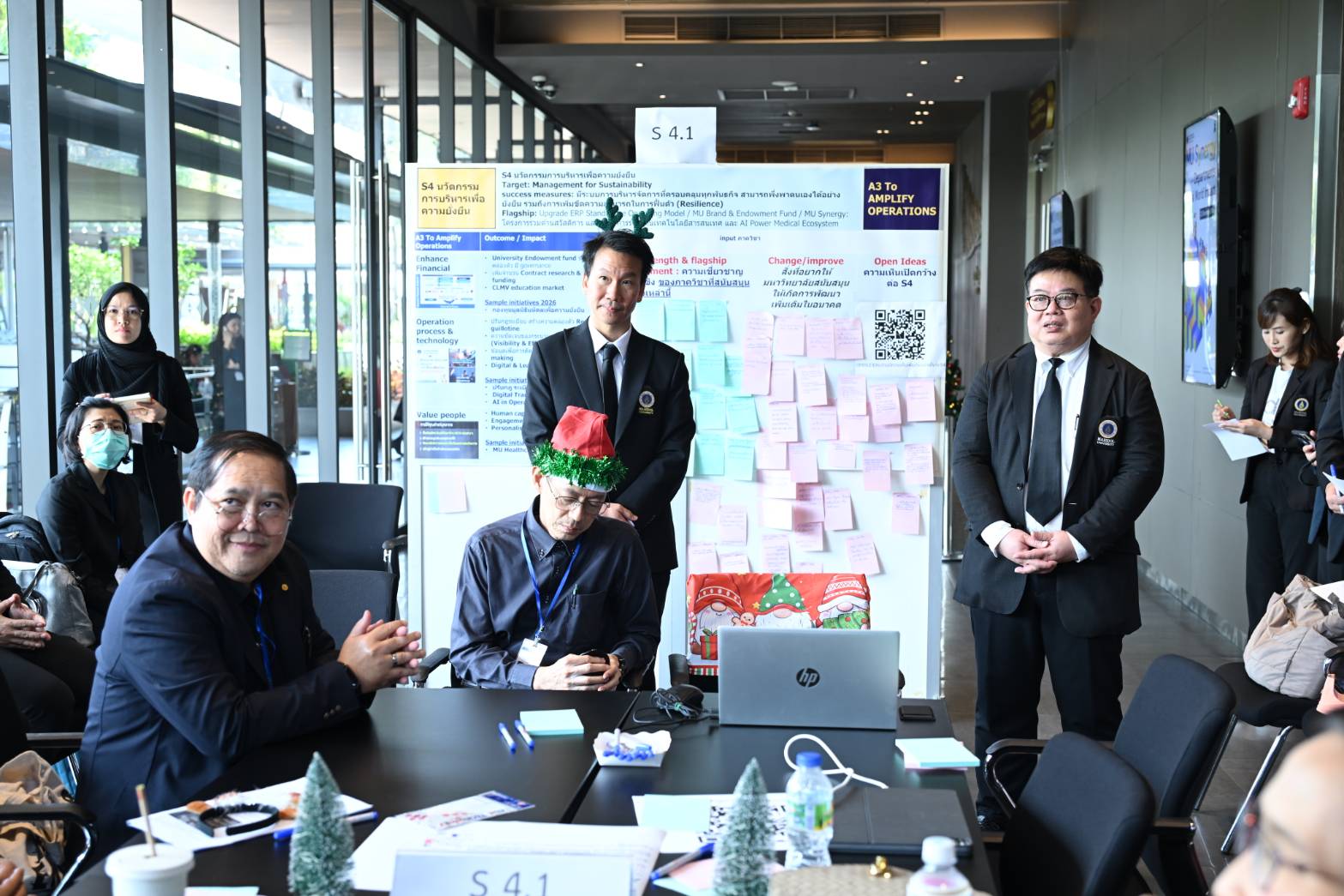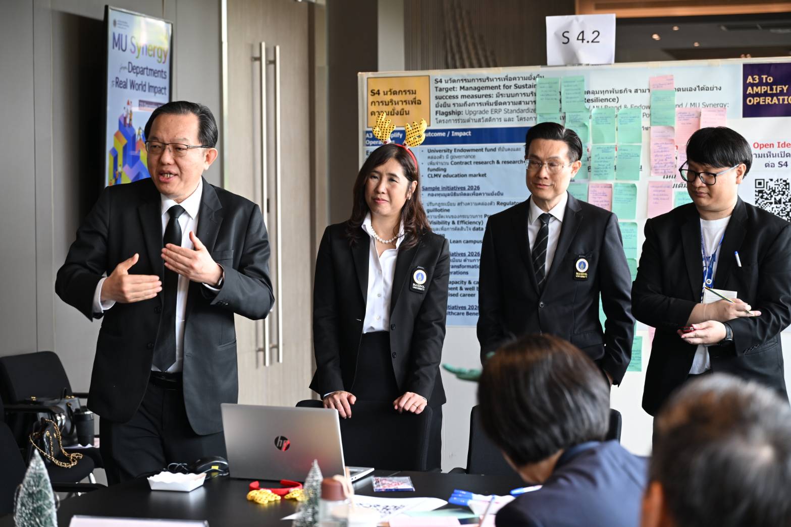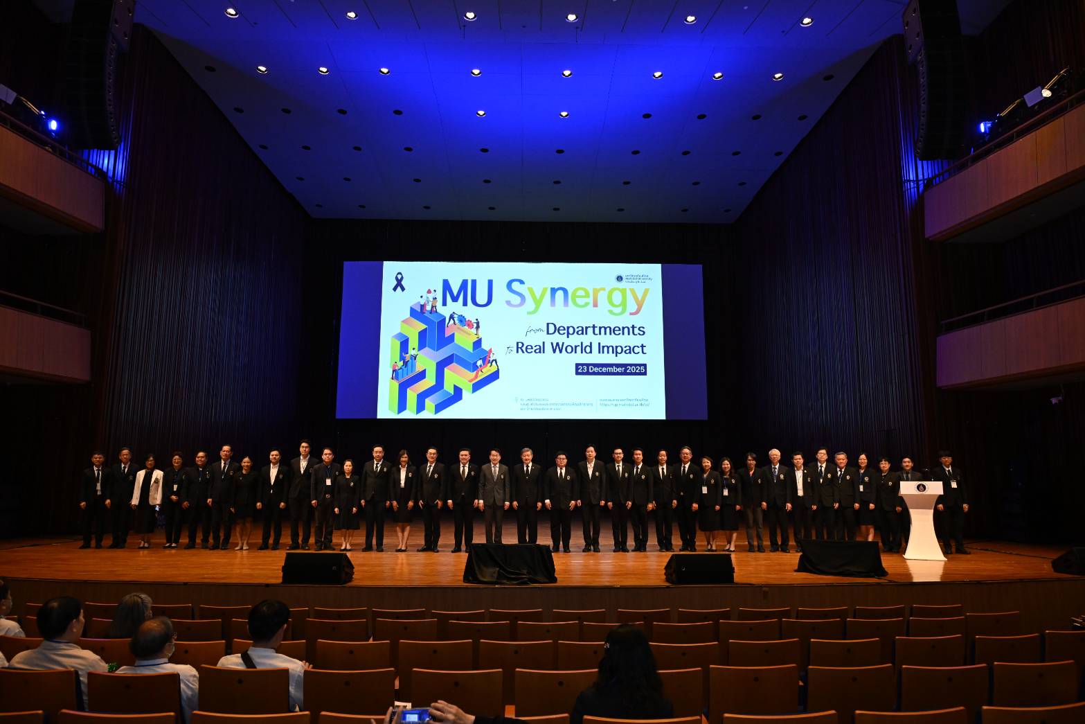 วันที่ 23 ธันวาคม 2568 มหาวิทยาลัยมหิดล จัดการสัมมนาเชิงยุทธศาสตร์เรื่อง “MU Synergy: from Departments to Real World Impact” โดยได้รับเกียรติจาก ศาสตราจารย์คลินิกเกียรติคุณ นายแพทย์ปิยะสกล สกลสัตยาทร นายกสภามหาวิทยาลัยมหิดล เป็นประธานกล่าวเปิดการสัมมนา จากนั้น การสื่อสารทิศทางยุทธศาสตร์มหาวิทยาลัย ภายใต้กรอบแนวคิด 4S, 3A และโครงการขับเคลื่อนระดับมหาวิทยาลัย (Flagship Projects) ประจำปีงบประมาณ พ.ศ. 2569 นำโดย ศาสตราจารย์ นายแพทย์ปิยะมิตร ศรีธรา อธิการบดีมหาวิทยาลัยมหิดล พร้อมด้วย ศาสตราจารย์ นพ. ม.ล.ชาครีย์ กิติยากร รองอธิการบดีฝ่ายวิจัย ศาสตราจารย์ ดร. เภสัชกรเนติ สุขสมบูรณ์ รองอธิการบดีฝ่ายการศึกษา รองศาสตราจารย์ ร.ท. ทันตแพทย์ชัชชัย คุณาวิศรุต รองอธิการบดีฝ่ายกิจการนักศึกษาและศิษย์เก่าสัมพันธ์ ศาสตราจารย์ ดร. เภสัชกรสมภพ ประธานธุรารักษ์ รองอธิการบดีฝ่ายแผนกลยุทธ์ พัฒนาคุณภาพและพันธกิจเพื่อสังคม และดร.ศรายุธ แสงจันทร์ รองอธิการบดีฝ่ายการคลัง ร่วมนำเสนอแนวทางการขับเคลื่อนยุทธศาสตร์ตามพันธกิจหลักของมหาวิทยาลัย ครอบคลุมทุกมิติสำคัญของการพัฒนาองค์กร ทั้งด้านการวิจัย ด้านการศึกษาและกิจการนักศึกษา ด้านบริการและพันธกิจเพื่อสังคม และด้านการบริหารจัดการ ให้เกิดความชัดเจนและสามารถนำไปสู่การปฏิบัติได้จริงในระดับส่วนงาน ณ มหิดลสิทธาคาร และศูนย์ประชุมและอาคารจอดรถมหิดลสิทธาคาร มหาวิทยาลัยมหิดล ศาลายา
