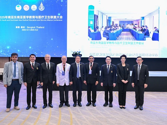วันที่ 1 ธันวาคม 2568 รองศาสตราจารย์ ดร.นภเรณู สัจจรักษ์ ธีระฐิติ รองอธิการบดีฝ่ายวิเทศสัมพันธ์และสภามหาวิทยาลัย มหาวิทยาลัยมหิดล เข้าร่วมการประชุม 2025 South and Southeast Asia Medical Education and Service Alliance Conference ซึ่งจัดโดย Kunming Medical University, Shanghai Jiao Tong University School of Medicine และมหาวิทยาลัยสงขลานครินทร์ พร้อมนี้ ได้เข้าร่วมการประชุมสมาชิกเครือข่าย South and Southeast Asia Medical Education and Service Alliance (SSAMESA) เพื่อรับฟังผลการดำเนินงานประจำปีของเครือข่าย และหารือแนวทางความร่วมมือในอนาคตร่วมกับสถาบันพันธมิตรจากประเทศต่าง ๆ ในภูมิภาคเอเชียใต้และเอเชียตะวันออกเฉียงใต้ ณ โรงแรมคอนราด กรุงเทพฯ