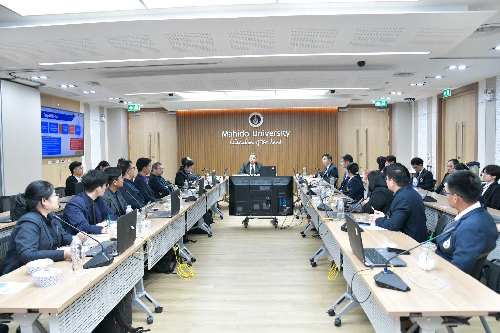 วันที่ 10 พฤศจิกายน 2568 ศาสตราจารย์ ดร. เภสัชกรสมภพ ประธานธุรารักษ์ รองอธิการบดีฝ่ายแผนกลยุทธ์ พัฒนาคุณภาพและพันธกิจเพื่อสังคม มหาวิทยาลัยมหิดล เป็นประธานให้การต้อนรับพร้อมบรรยายแลกเปลี่ยนด้านการประกันคุณภาพการศึกษาระดับหลักสูตรตามเกณฑ์ AUN-QA ให้แก่คณะผู้บริหารและบุคลากรจากมหาวิทยาลัยวลัยลักษณ์ นำโดย รองศาสตราจารย์ ดร.สุรินทร์ ไหมศรีกรด รองอธิการบดีฝ่ายพัฒนาการศึกษาและสื่อสารองค์กร มหาวิทยาลัยวลัยลักษณ์ ในโอกาสเข้าศึกษาดูงานและแลกเปลี่ยนประสบการณ์ด้านการประกันคุณภาพการศึกษาระดับหลักสูตรตามเกณฑ์ AUN-QA (ASEAN University Network Quality Assurance) โอกาสนี้ อาจารย์ ดร.เลิศยศ ตรีรัตนไพบูลย์ ผู้ช่วยอธิการบดีฝ่ายพัฒนาคุณภาพ มหาวิทยาลัยมหิดล พร้อมด้วยบุคลากรกองพัฒนาคุณภาพ มหาวิทยาลัยมหิดล เข้าร่วมต้อนรับ เพื่อร่วมแลกเปลี่ยนเรียนรู้แนวทางการเตรียมความพร้อมของหลักสูตรเพื่อรับการประเมินคุณภาพตามเกณฑ์ AUN-QA ระหว่างสถาบัน ณ ห้องประชุม 530 ชั้น 5 อาคารสำนักงานอธิการบดี ศาลายา