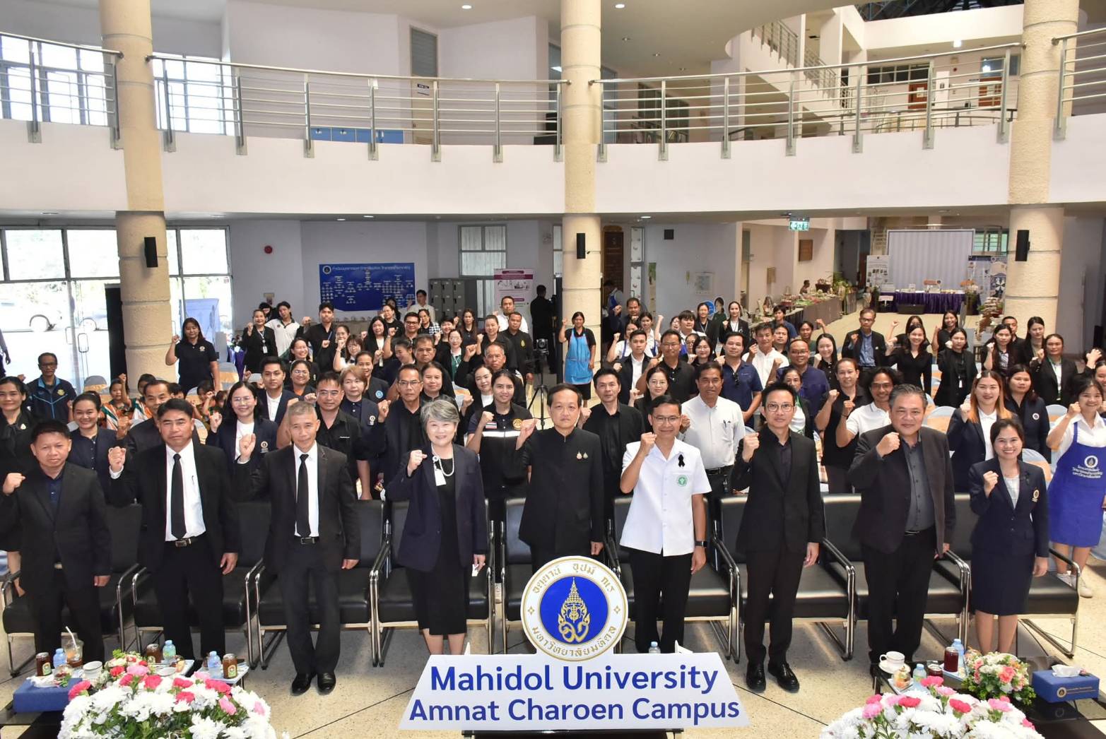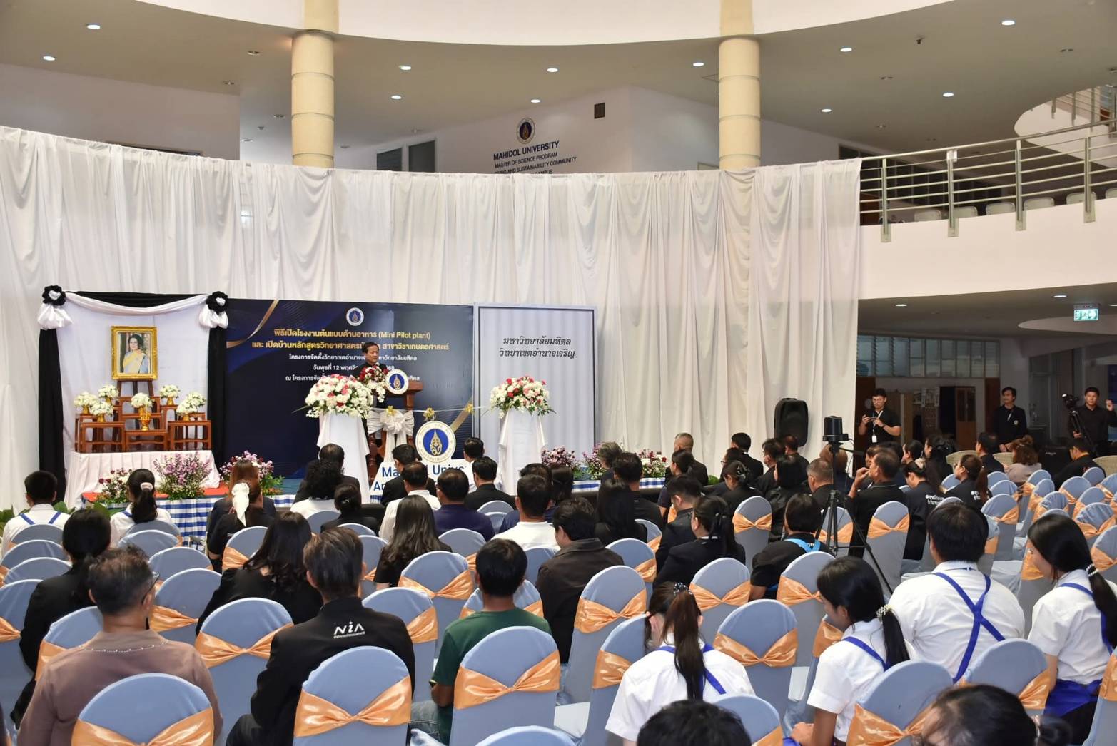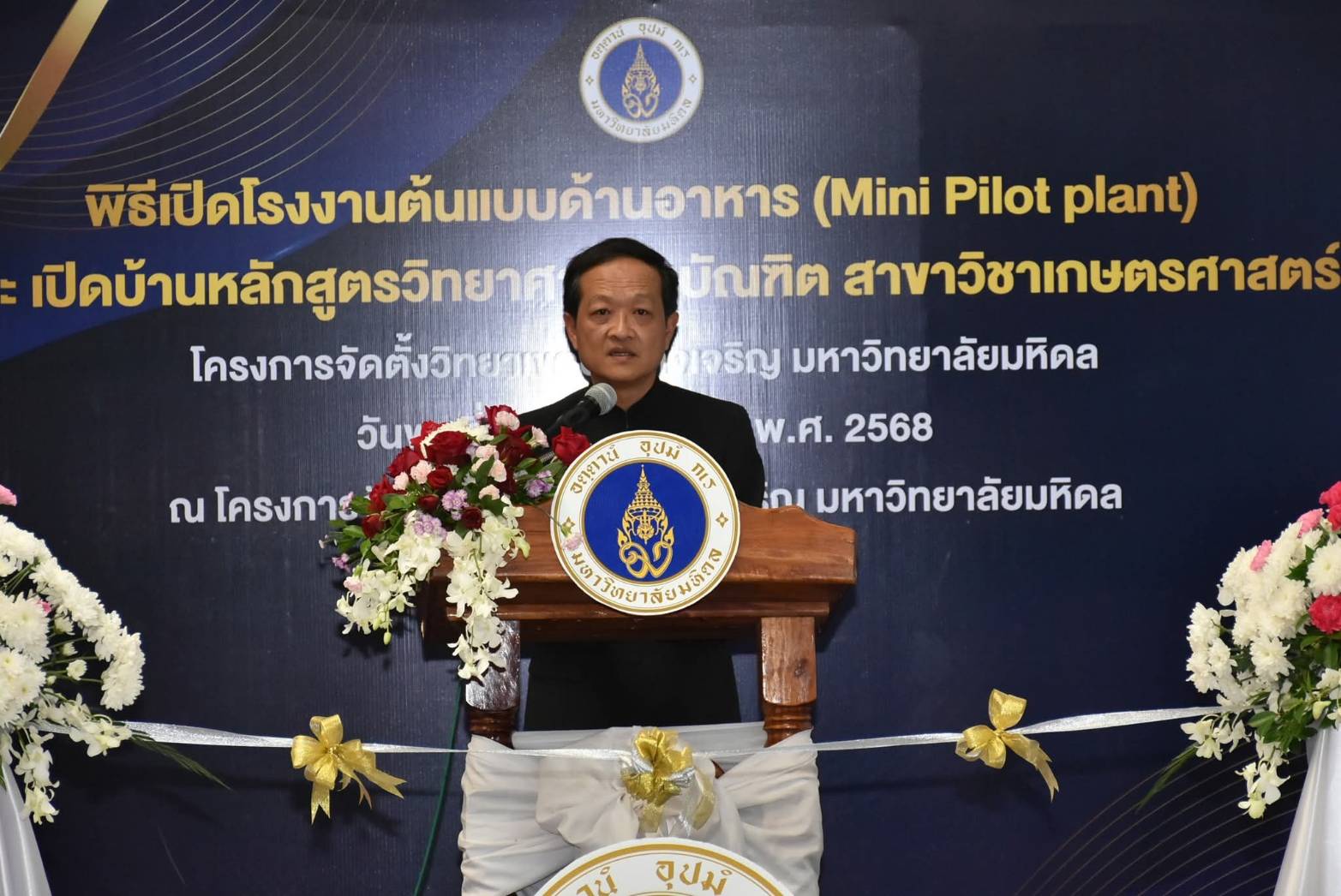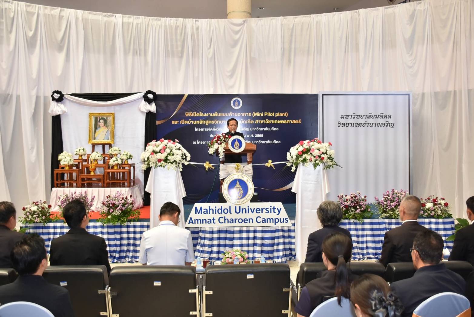 วันที่ 12 พฤศจิกายน 2568 โครงการจัดตั้งวิทยาเขตอำนาจเจริญ มหาวิทยาลัยมหิดล จัดพิธีเปิดโรงงานต้นแบบด้านอาหาร (Mini Pilot Plant) และกิจกรรม เปิดบ้านหลักสูตรวิทยาศาสตรบัณฑิต สาขาวิชาเกษตรศาสตร์ โดยมี นายอนุรัตน์ ธรรมประจำจิต ผู้ว่าราชการจังหวัดอำนาจเจริญ เป็นประธานในพิธี พร้อมด้วย คุณศิริลักษณ์ เกี่ยวข้อง รองอธิการบดีฝ่ายโครงการจัดตั้งวิทยาเขตอำนาจเจริญ มหาวิทยาลัยมหิดล และผู้แทนจากหน่วยงานต่าง ๆ ในพื้นที่เข้าร่วมในพิธี ซึ่งจัดขึ้นเพื่อเป็นแหล่งเรียนรู้และฝึกปฏิบัติจริงของนักศึกษา รวมทั้งให้บริการแก่เกษตรกร วิสาหกิจชุมชน และผู้ประกอบการในพื้นที่ ในด้านการแปรรูปผลผลิตทางการเกษตรให้มีมูลค่าเพิ่ม มุ่งสู่การเป็นศูนย์กลางแห่งการเรียนรู้และนวัตกรรมอาหารเพื่อสุขภาพของภูมิภาค