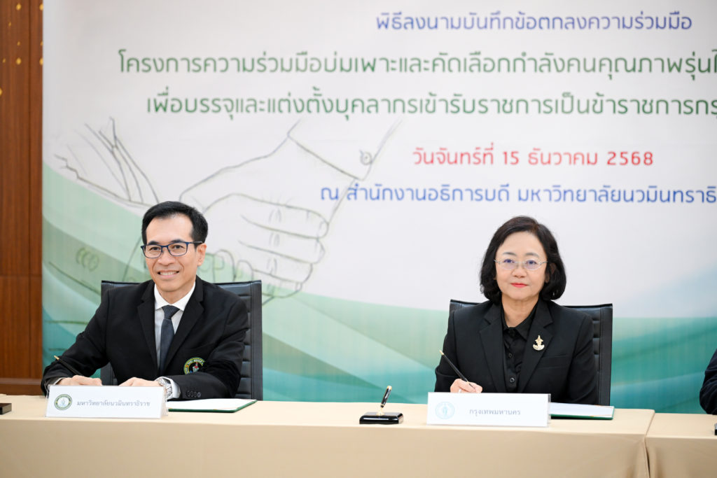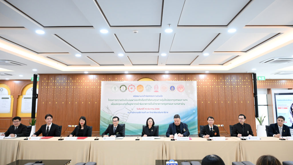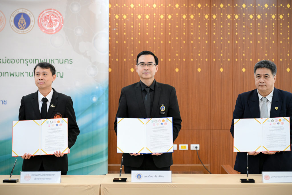 วันที่ 15 ธันวาคม 2568 ศาสตราจารย์ ดร. เภสัชกรเนติ สุขสมบูรณ์ รองอธิการบดีฝ่ายการศึกษา มหาวิทยาลัยมหิดล ร่วมลงนามในนามมหาวิทยาลัยมหิดล พร้อมด้วย ผู้แทนจากสถาบันอุดมศึกษาที่เข้าร่วมความร่วมมือโครงการความร่วมมือเฉพาะและการคัดเลือกกำลังคนคุณภาพรุ่นใหม่ของกรุงเทพมหานคร เพื่อบรรจุและแต่งตั้งบุคคลเข้ารับราชการเป็นข้าราชการกรุงเทพมหานครสามัญ ร่วมกับสถาบันอุดมศึกษาหลายแห่ง ณ สำนักงานอธิการบดี มหาวิทยาลัยนวมินทราธิราช กรุงเทพฯ