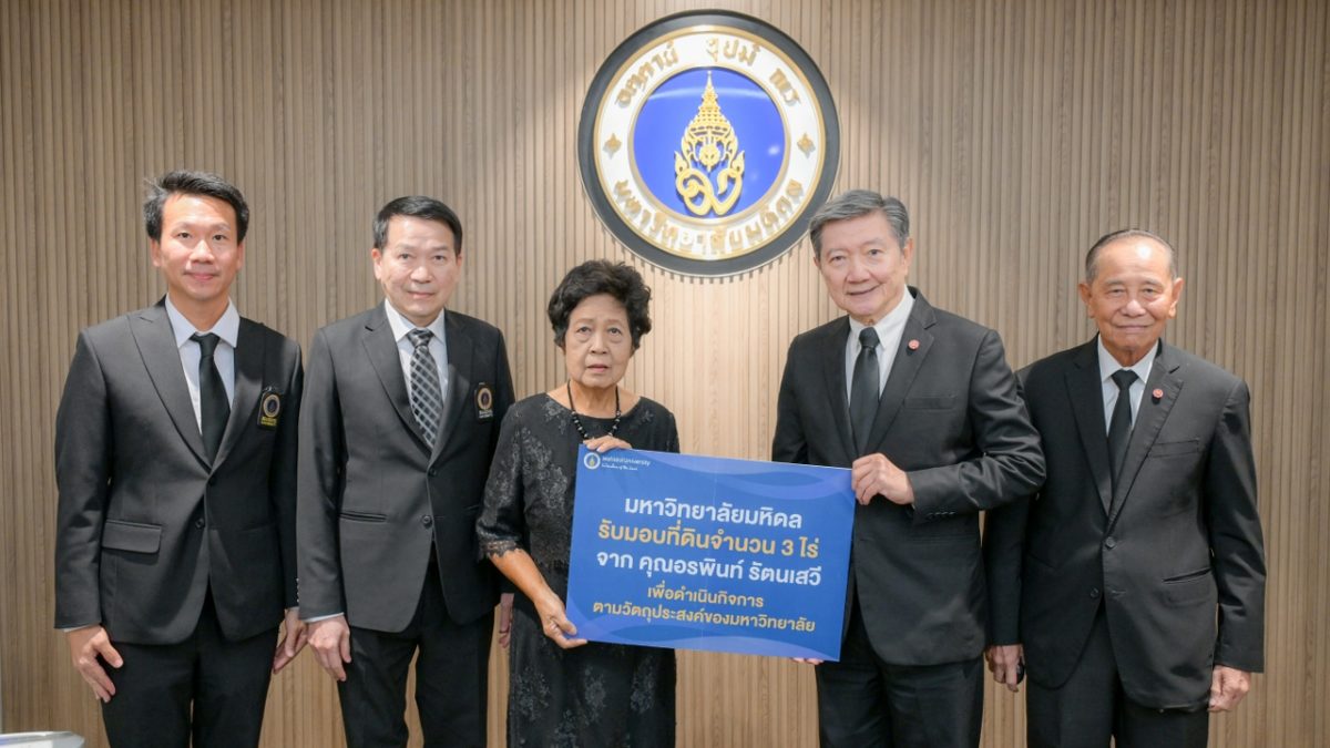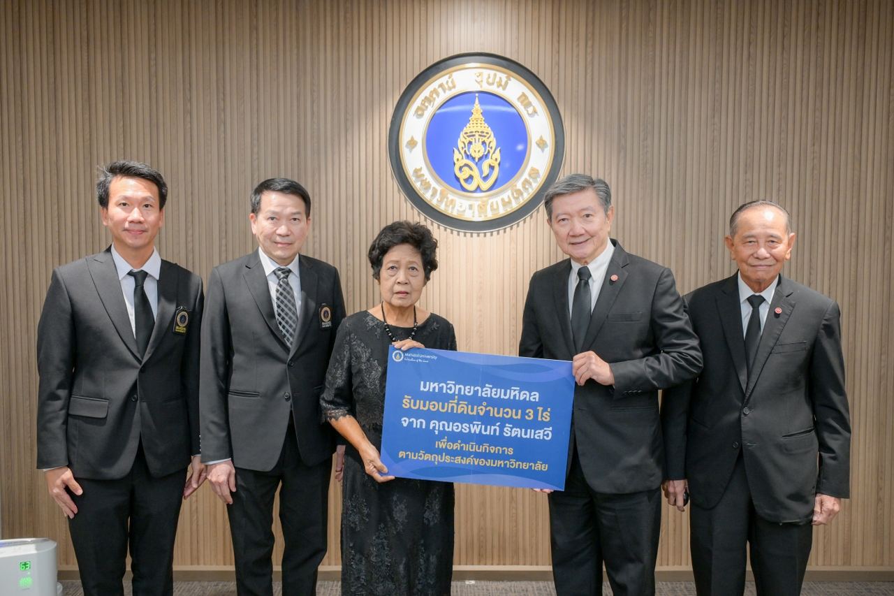 วันที่ 19 พฤศจิกายน 2568 ศาสตราจารย์คลินิกเกียรติคุณ นายแพทย์ปิยะสกล สกลสัตยาทร นายกสภามหาวิทยาลัยมหิด พร้อมด้วย ศาสตราจารย์ นายแพทย์ปิยะมิตร ศรีธรา อธิการบดีมหาวิทยาลัยมหิดล รับมอบที่ดินจำนวน 3 ไร่ บริเวณพื้นที่ฝั่งทิศตะวันตก มหาวิทยาลัยมหิดล ศาลายา จาก คุณอรพินท์ รัตนเสวี เพื่อใช้ดำเนินโครงการ “Excellence Center Mobile Stroke Unit” (MSU) เพื่อยกระดับระบบการช่วยเหลือผู้ป่วยโรคหลอดเลือดสมองแบบครบวงจร โดยมี กรรมการสภามหาวิทยาลัยมหิดล คณะผู้บริหารมหาวิทยาลัยมหิดล และผู้แทนผู้บริหารส่วนงานเข้าร่วมเป็นเกียรติ ณ ห้องประชุมศาสตราจารย์เกียรติคุณ นายแพทย์นที รักษ์พลเมือง ชั้น 5 สำนักงานอธิการบดี มหาวิทยาลัยมหิดล ศาลายา