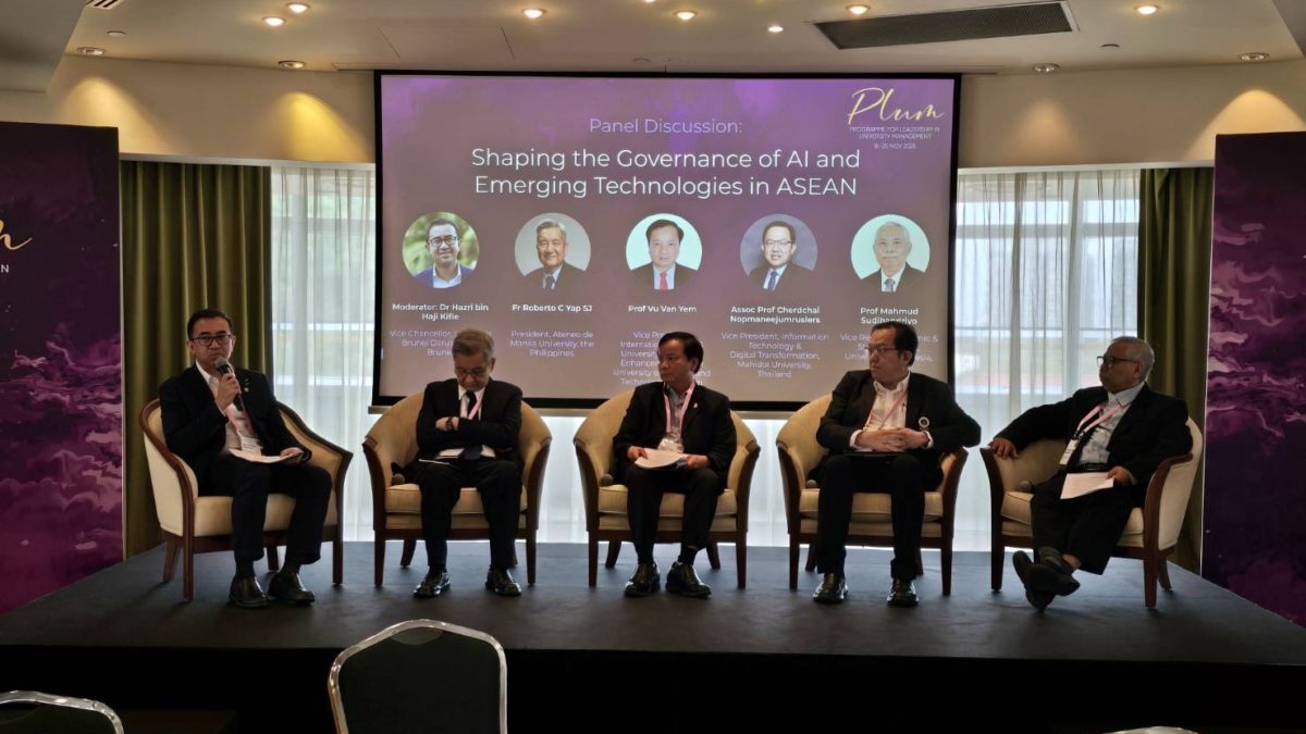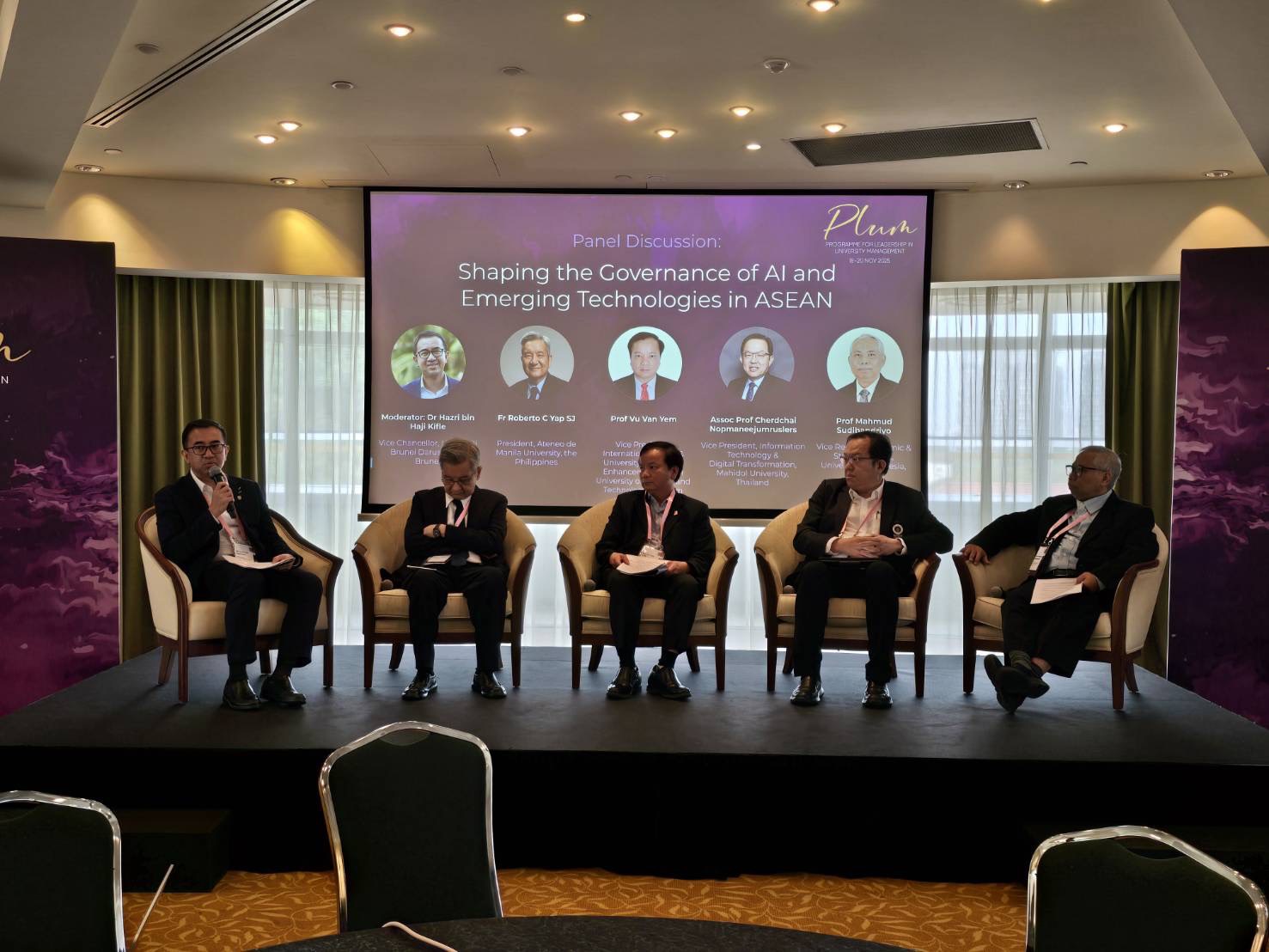 ในโอกาสนี้ รองศาสตราจารย์ นายแพทย์เชิดชัย นพมณีจำรัสเลิศ รองอธิการบดีฝ่ายสารสนเทศและดิจิทัลทรานส์ฟอร์เมชัน มหาวิทยาลัยมหิดล ร่วมการเสวนา “Universities as Regional Leaders: Shaping Policies and Governance of AI and Emerging Technologies in ASEAN” โดยมี Fr.Roberto C Yap SJ, President, Ateneo de Manila University, the Philippines Prof.Vu Van Yem, Vice President, Internationalization & University Ecosystem Enhancement, Hanoi University of Science and Technology, Vietnam Prof.Mahmud Sudibandriyo, Vice Rector, Academic & Student Affairs, Universitas Indonesia ร่วมการเสวนา ดำเนินรายการโดย Dr.Hazri bin Haji Kifle, Vice Chancellor, Universiti Brunei Darussalam เพื่อแลกเปลี่ยนมุมมองในฐานะที่มหาวิทยาลัยเป็นส่วนสำคัญ ที่มีบทบาทในการกำหนดกลยุทธ์ด้าน AI การพัฒนานโยบาย การสร้างความร่วมมือข้ามพรมแดน รวมถึงการส่งเสริมรูปแบบธรรมาภิบาลที่ครอบคลุมในระดับประเทศและภูมิภาค และสอดคล้องกับอัตลักษณ์ของอาเซียน