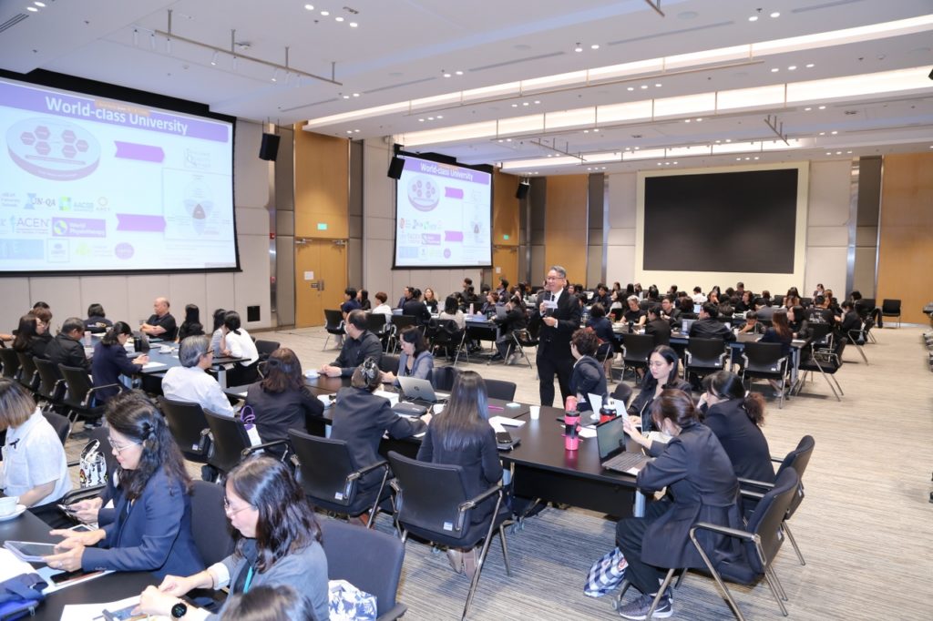 การประชุมครั้งนี้จัดขึ้นเพื่อเสริมสร้างความร่วมมือและสร้างเครือข่ายในการพัฒนาคุณภาพระหว่างผู้บริหารระดับคณบดี ผู้อำนวยการ และเจ้าหน้าที่ผู้รับผิดชอบด้านการประกันคุณภาพของส่วนงานและหลักสูตร โดยกิจกรรมภายในงานประกอบด้วย Team Building โดยได้รับเกียรติจาก อาจารย์สัญชัย สูติพันธ์วิหาร จากคณะสิ่งแวดล้อมและทรัพยากรศาสตร์ มหาวิทยาลัยมหิดล เพื่อเสริมสร้างความสัมพันธ์ระหว่างผู้เข้าร่วมการประชุม โอกาสนี้ ศาสตราจารย์ ดร. เภสัชกรสมภพ ประธานธุรารักษ์ รองอธิการบดีฝ่ายแผนกลยุทธ์ พัฒนาคุณภาพและพันธกิจเพื่อสังคม มหาวิทยาลัยมหิดล และอาจารย์ ดร. เลิศยศ ตรีรัตนไพบูลย์ ผู้ช่วยอธิการบดีฝ่ายพัฒนาคุณภาพ มหาวิทยาลัยมหิดล ร่วมดำเนินกิจกรรม Workshop แลกเปลี่ยนเรียนรู้และระดมความคิดเห็นร่วมกัน โดยมี ผู้เข้าร่วมได้เสนอประเด็นท้าทาย โอกาสพัฒนา และแนวทางปรับปรุงการดำเนินงานด้านคุณภาพในระดับส่วนงานและหลักสูตร เพื่อยกระดับมาตรฐานของมหาวิทยาลัยมหิดล
