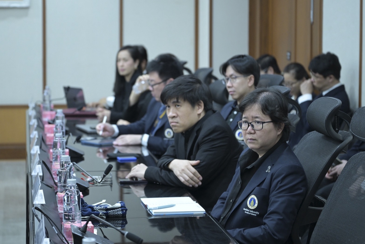 วันที่ 27 พฤศจิกายน 2568 ศาสตราจารย์ นายแพทย์ปิยะมิตร ศรีธรา อธิการบดีมหาวิทยาลัยมหิดล พร้อมด้วยคณะผู้บริหารมหาวิทยาลัยมหิดล ร่วมติดตามผลการดำเนินงานตามข้อตกลงการปฏิบัติงานของส่วนงาน (PA-Visit) ประจำปีงบประมาณ 2569 ของคณะวิทยาศาสตร์ มหาวิทยาลัยมหิดล โดยมี รองศาสตราจารย์ ดร.ประสิทธิ์ สุวรรณเลิศ คณบดีคณะวิทยาศาสตร์ มหาวิทยาลัยมหิดล พร้อมด้วยผู้บริหารคณะฯ ให้การต้อนรับ และนำเสนอผลการดำเนินงานที่โดดเด่นในรอบปีงบประมาณที่ผ่านมา และแผนการดำเนินงานที่สำคัญของปีงบประมาณ 2569 ของคณะวิทยาศาสตร์ มหาวิทยาลัยมหิดล พร้อมรับฟังข้อเสนอแนะการดำเนินงานในปีงบประมาณ 2569 ณ ห้องประชุม K101 อาคารเฉลิมพระเกียรติ คณะวิทยาศาสตร์ มหาวิทยาลัยมหิดล พญาไท
