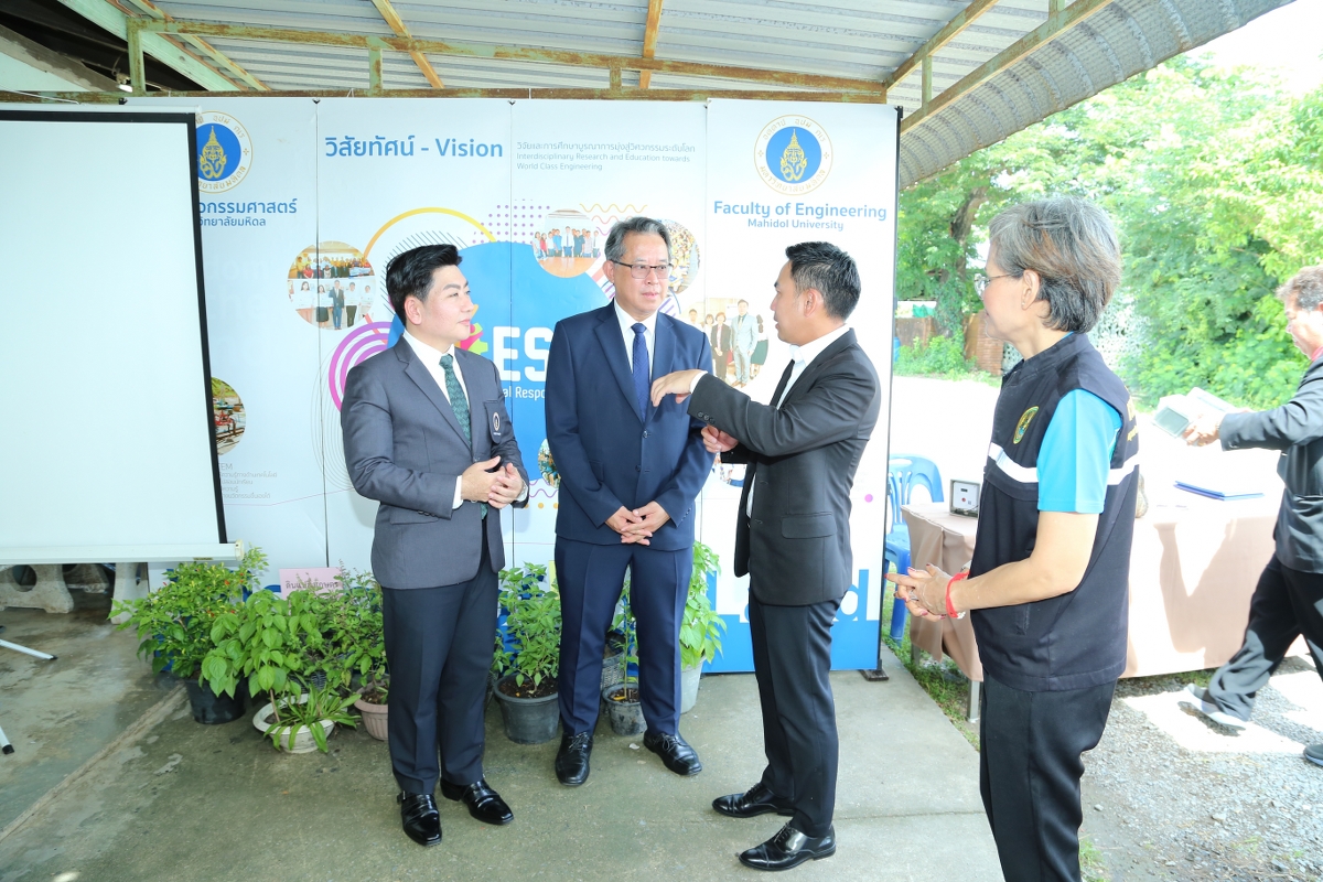 วันที่ 18 กันยายน 2568 ศาสตราจารย์ ดร. เภสัชกรสมภพ ประธานธุรารักษ์ รองอธิการบดีฝ่ายแผนกลยุทธ์ พัฒนาคุณภาพ และพันธกิจเพื่อสังคม มหาวิทยาลัยมหิดล เป็นประธานในพิธีส่งมอบนวัตกรรม “Smart Sensor & Control เพื่อใช้ในการบริการงานชุมชนท้องถิ่น” โดยมี นายอิทธิพงศ์ จักษ์ตรีมงคล นายอำเภอพุทธมณฑล พร้อมด้วย รองศาสตราจารย์ ดร.ธนภัทร์ วานิชานนท์ คณบดีคณะวิศวกรรมศาสตร์ มหาวิทยาลัยมหิดล ร่วมแสดงความยินดี และกล่าวถึงความร่วมมือในการนำนวัตกรรมและองค์ความรู้สมัยใหม่มาสนับสนุนชุมชนให้เข้มแข็งอย่างยั่งยืน อาจารย์วรวิทย์ อิศรางกูร ณ อยุธยา ที่ปรึกษาคณบดีด้านวิศวกรรมเพื่อความรับผิดชอบต่อสังคม คณะวิศวกรรมศาสตร์ มหาวิทยาลัยมหิดล กล่าวรายงานวัตถุประสงค์การดำเนินโครงการ โอกาสนี้ คุณไพบูลย์ สวัสดิ์จุ้ย ประธานกลุ่มวิสาหกิจชุมชนเกษตรอินทรีย์บ้านคลองโยง เป็นผู้แทนรับมอบและกล่าวขอบคุณ ซึ่งมีผู้บริหารมหาวิทยาลัย หน่วยงานภาครัฐ ภาคเอกชน เกษตรกร และประชาชนในพื้นที่ร่วมแสดงความยินดี ณ วิสาหกิจชุมชนเกษตรอินทรีย์คลองโยง จ.นครปฐม