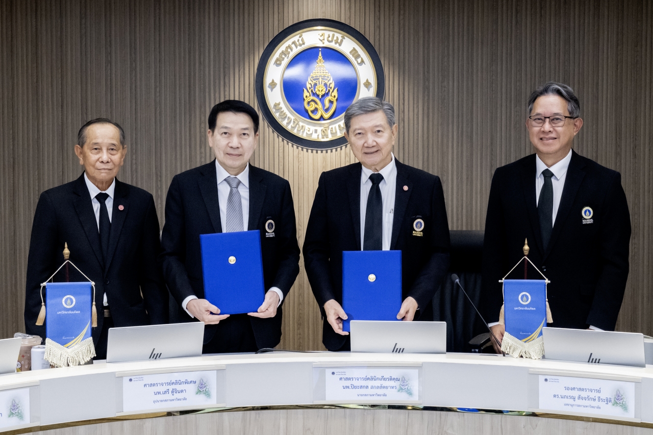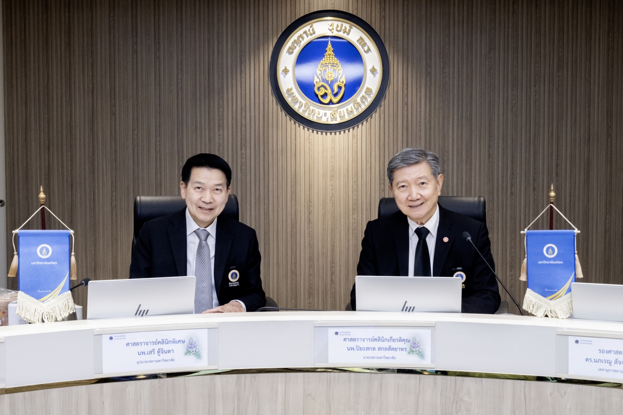 ในการนี้ ที่ประชุมสภามหาวิทยาลัยมหิดล ครั้งที่ 623 (11/2568) ได้จัดพิธีลงนามข้อตกลงการปฏิบัติงานผู้บริหารมหาวิทยาลัยมหิดล (Performance Agreement) ประจำปีงบประมาณ พ.ศ. 2569 โดยมี ศาสตราจารย์คลินิกเกียรติคุณ นายแพทย์ปิยะสกล สกลสัตยาทร นายกสภามหาวิทยาลัยมหิดล และศาสตราจารย์ นายแพทย์ปิยะมิตร ศรีธรา อธิการบดีมหาวิทยาลัยมหิดล ร่วมลงนาม